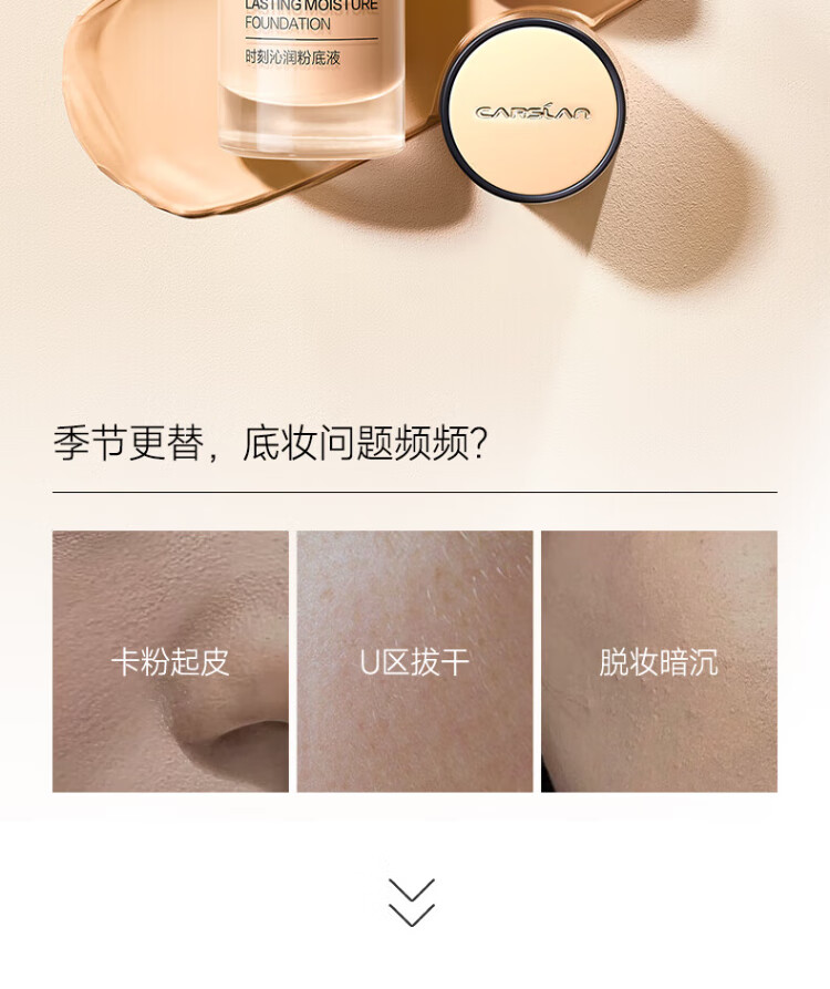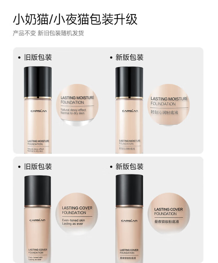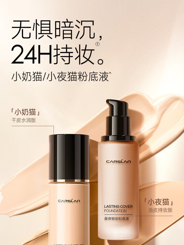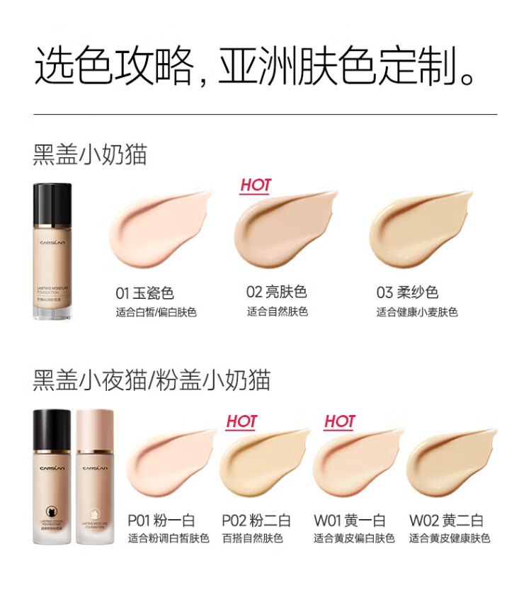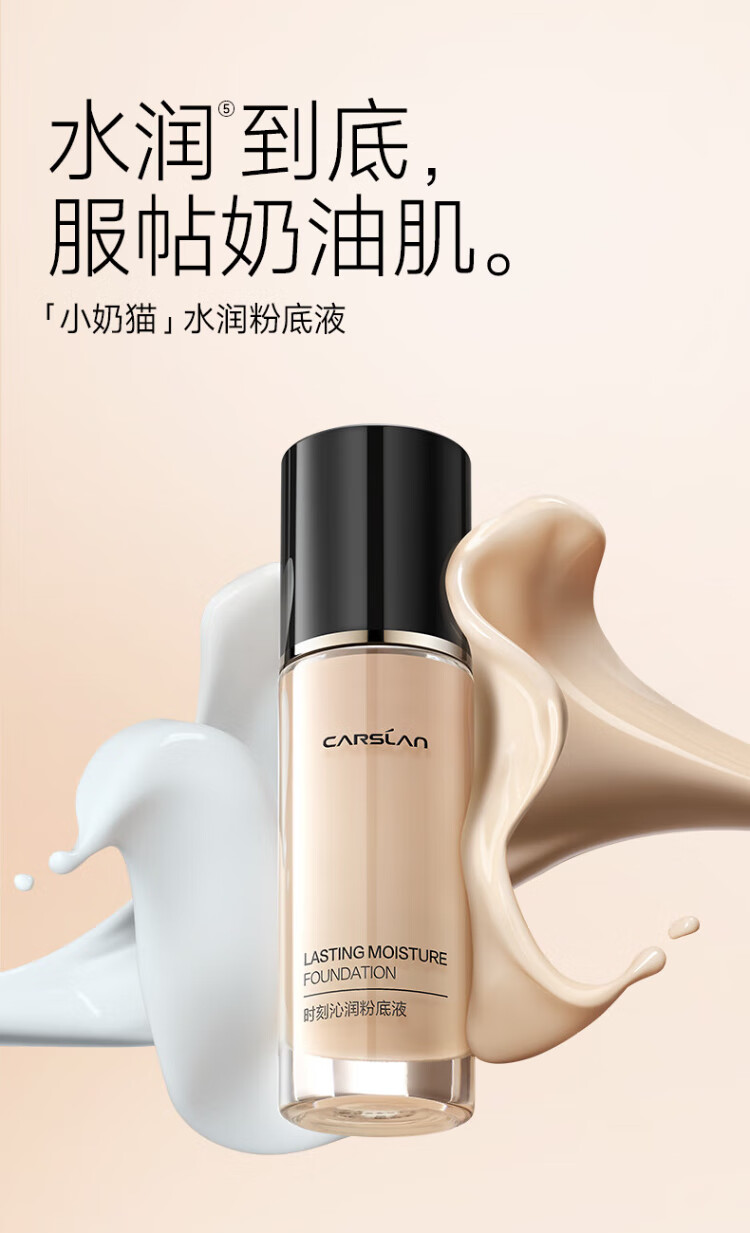 Carslan little cat liquid foundation concealer, long-lasting moisturizing, brightening, non-removing makeup, dry skin 02# bright skin color 30g birthday gift for women