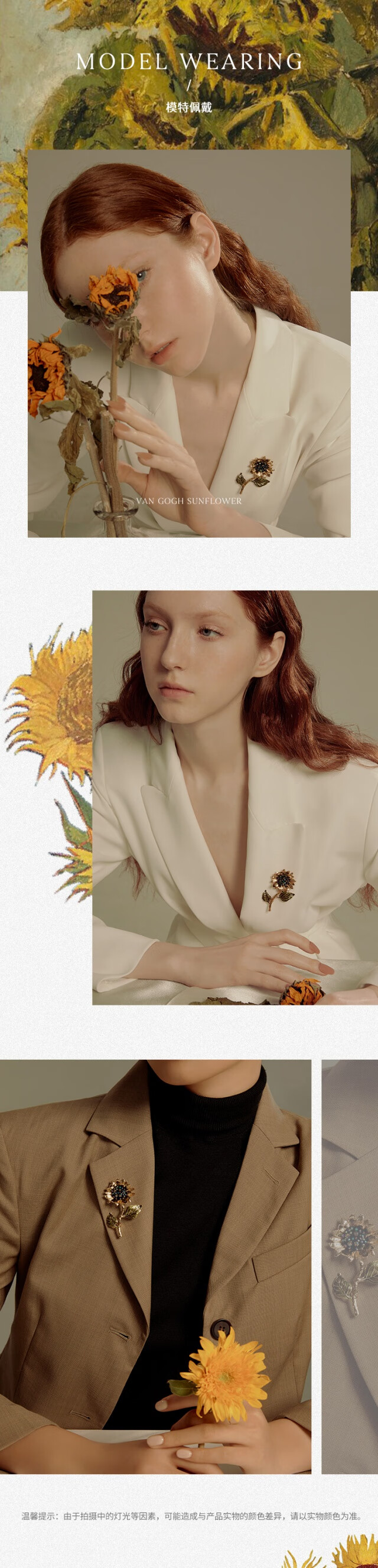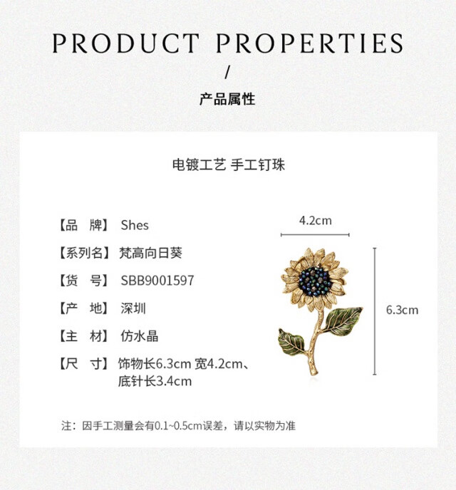 She s Qianzi Van Gogh sunflower retro imitation crystal high-end high-end brooch light luxury corsage birthday gift for girlfriend