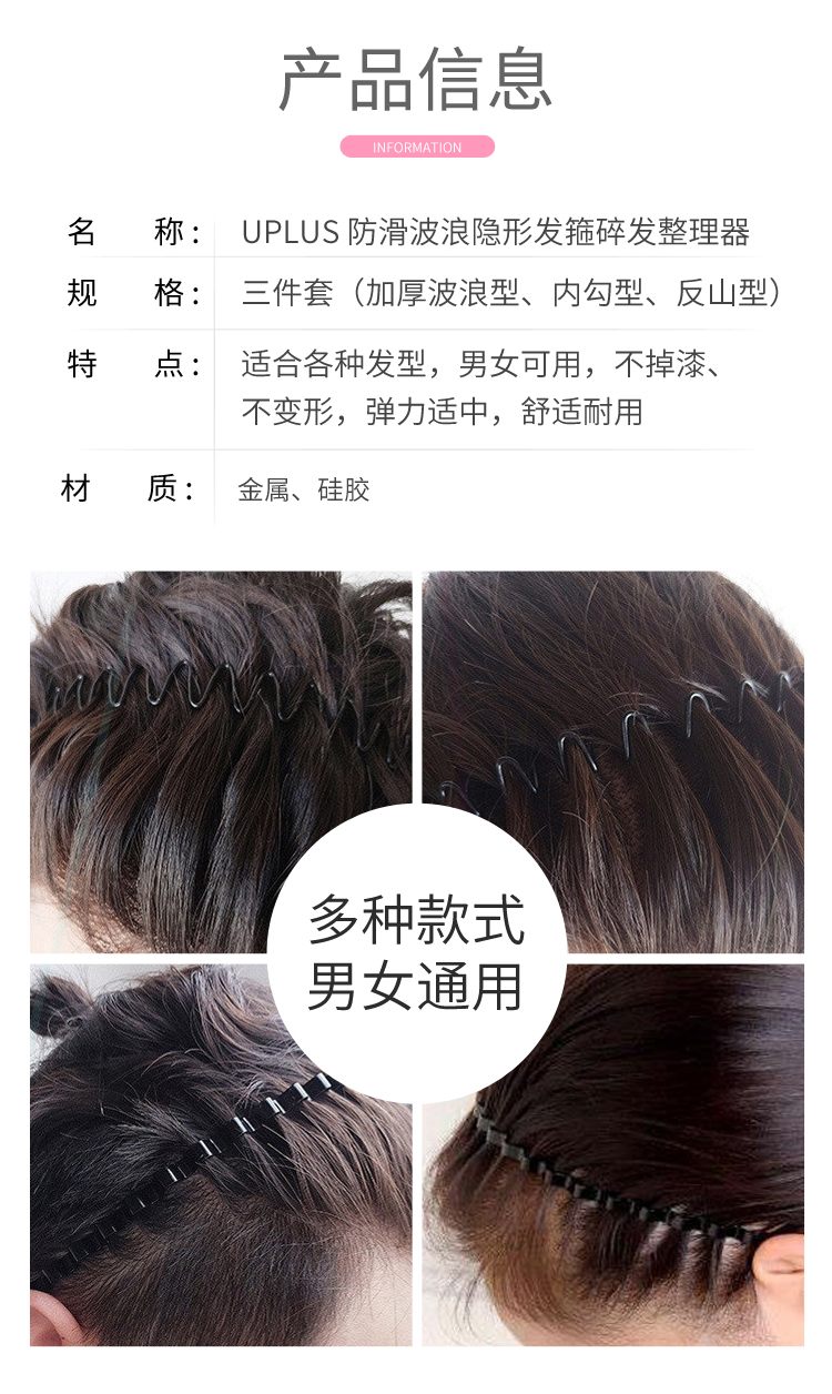 UPLUS hairband men's invisible headband hair bundle 3-piece set face wash hairband men's hairpin broken hair organizer hairpin