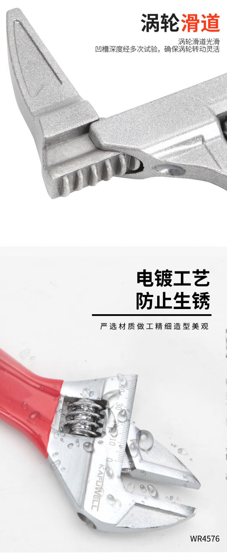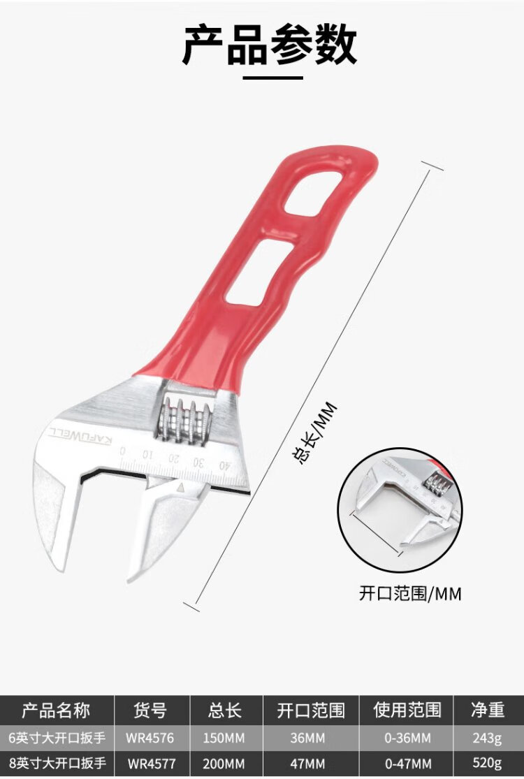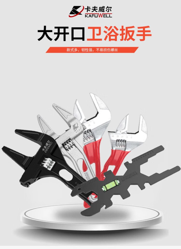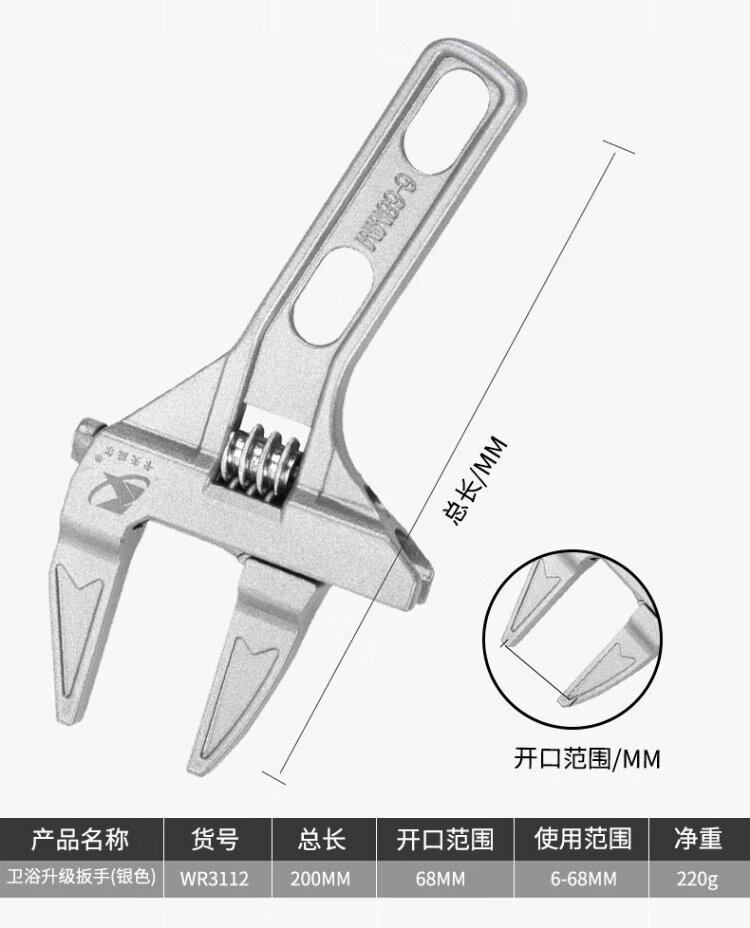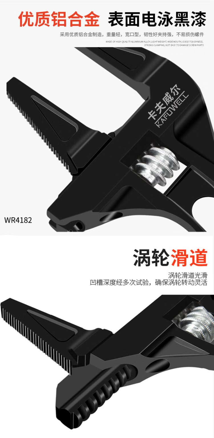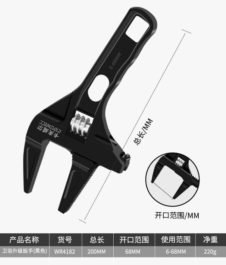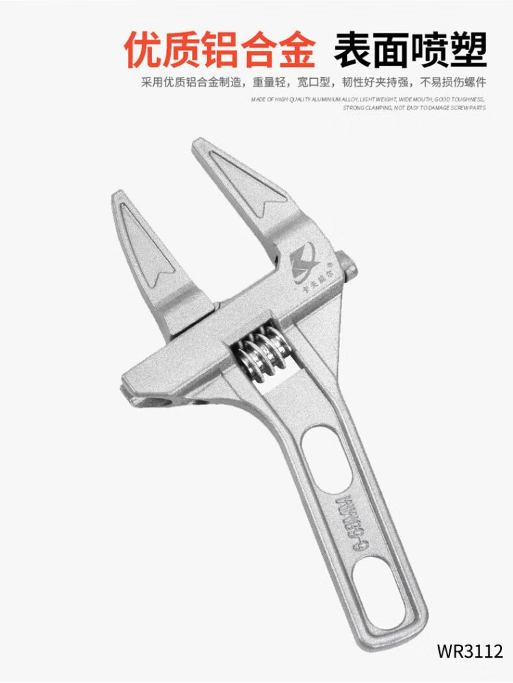 Kraftwell large open adjustable wrench live mouth bathroom wrench pipe fittings repair wrench sewer pipe air conditioning pipe wrench WR3112