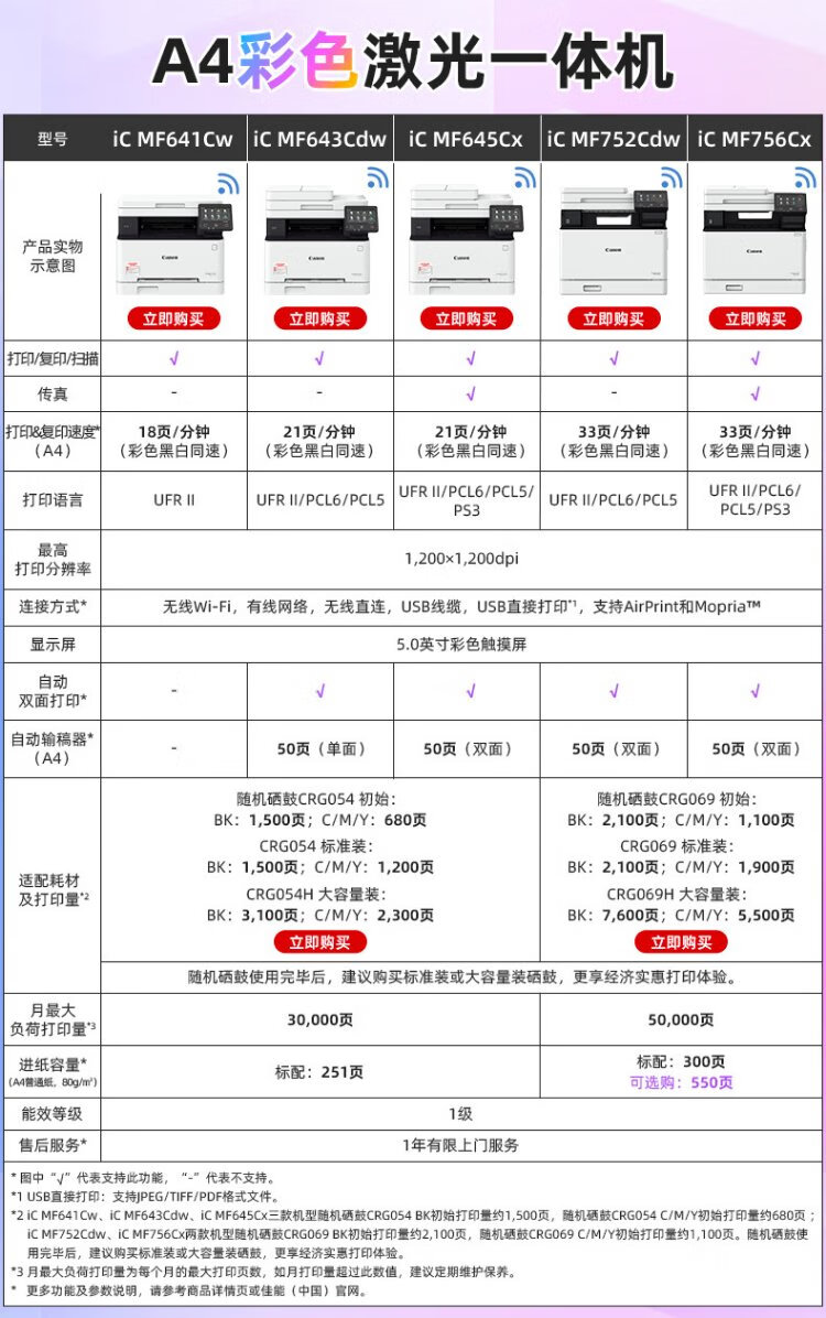 Canon iC MF643Cdw A4 format wireless color laser multi-function all-in-one machine (print/copy/scan/automatic duplex/automatic document feeder for home use)