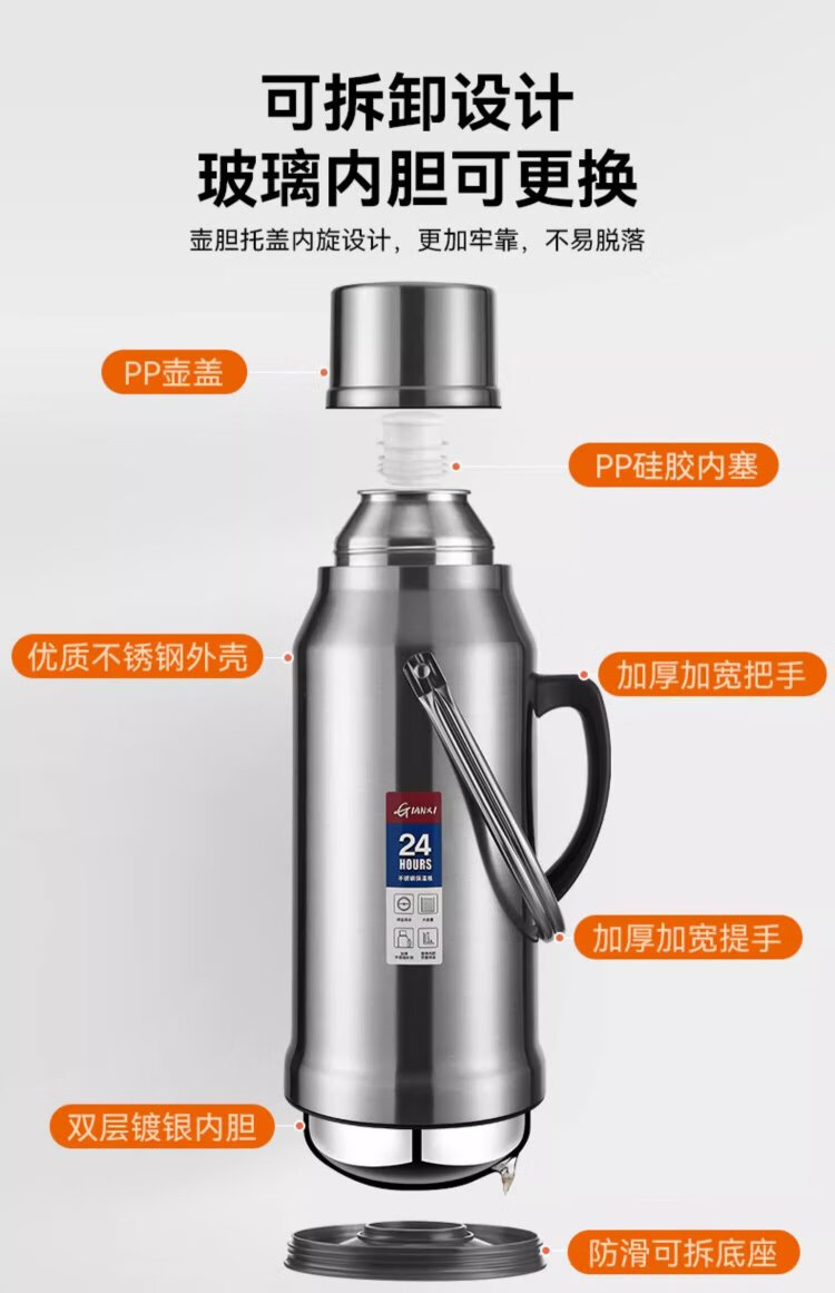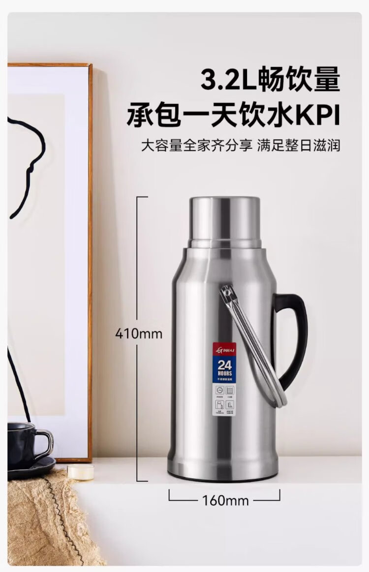 Tianxi (TIANXI) thermos kettle thermos bottle large capacity thermos kettle stainless steel vacuum glass liner thermos bottle student thermos bottle 3.2L