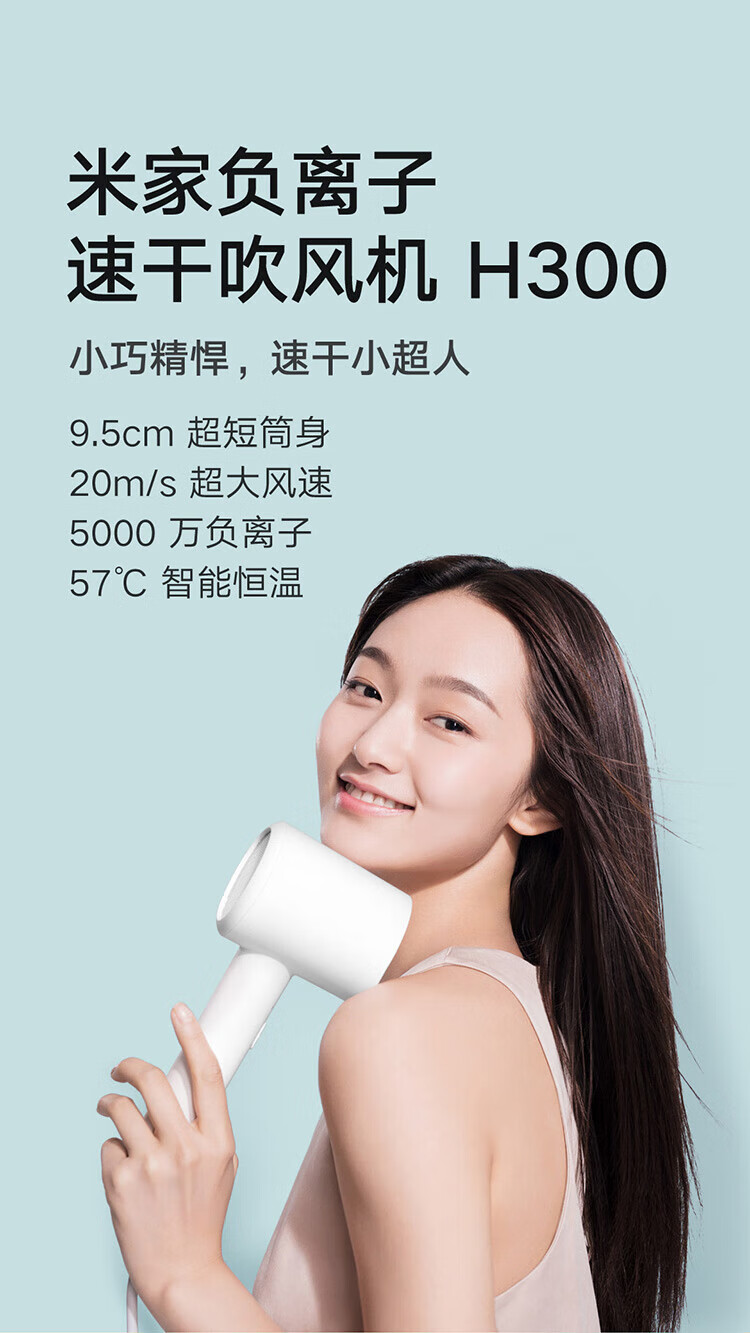 Mijia Xiaomi Hair Dryer Quick-drying Hair Dryer Negative Ion Hair Care H300 Recommended Gift for Girlfriend Birthday Gift Home Student Dormitory