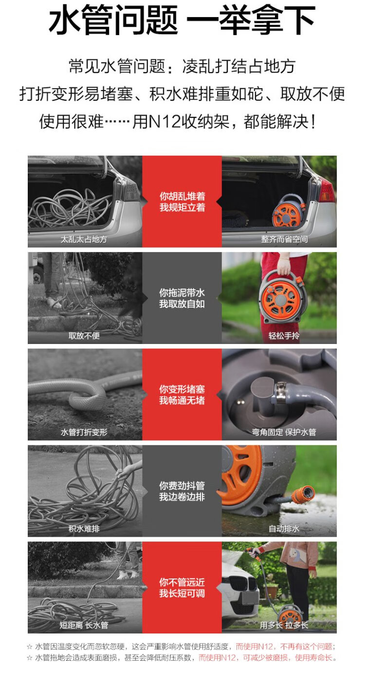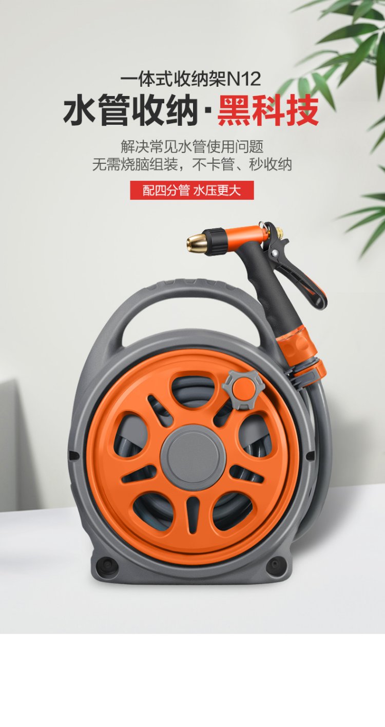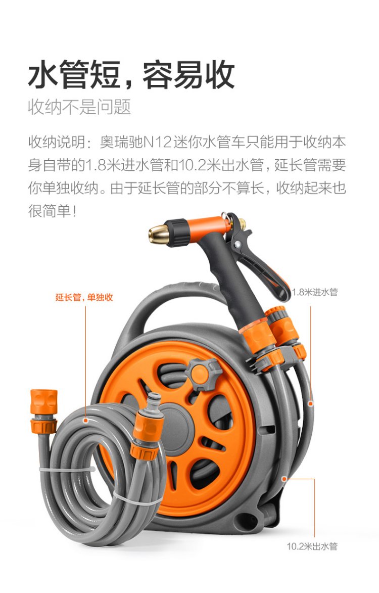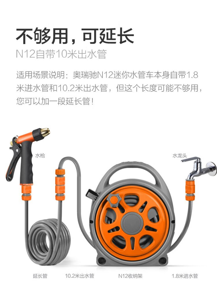 Orichi high-pressure car wash water gun integrated gardening water pipe set H3+10m N12 storage rack+10m extension pipe