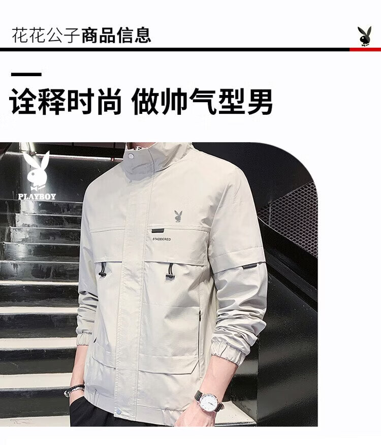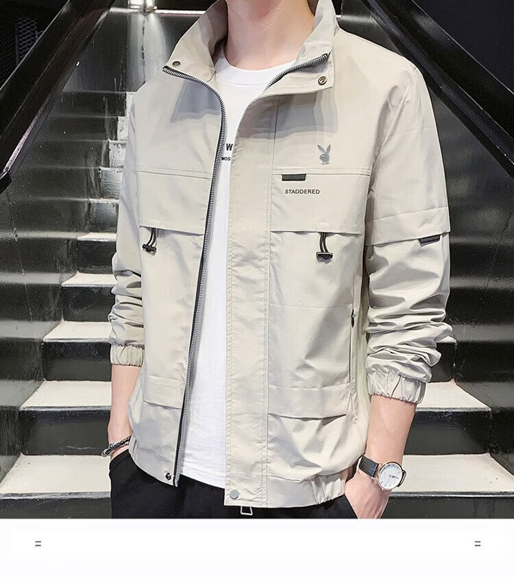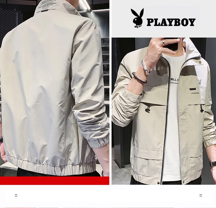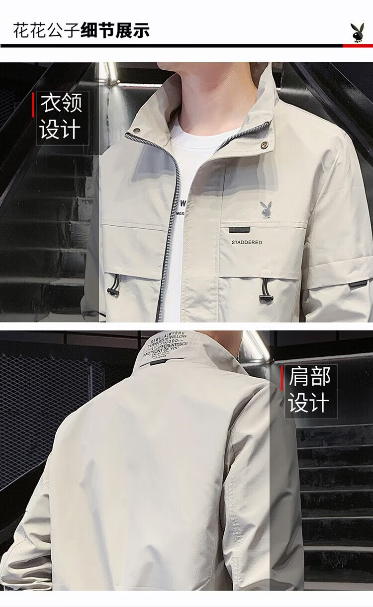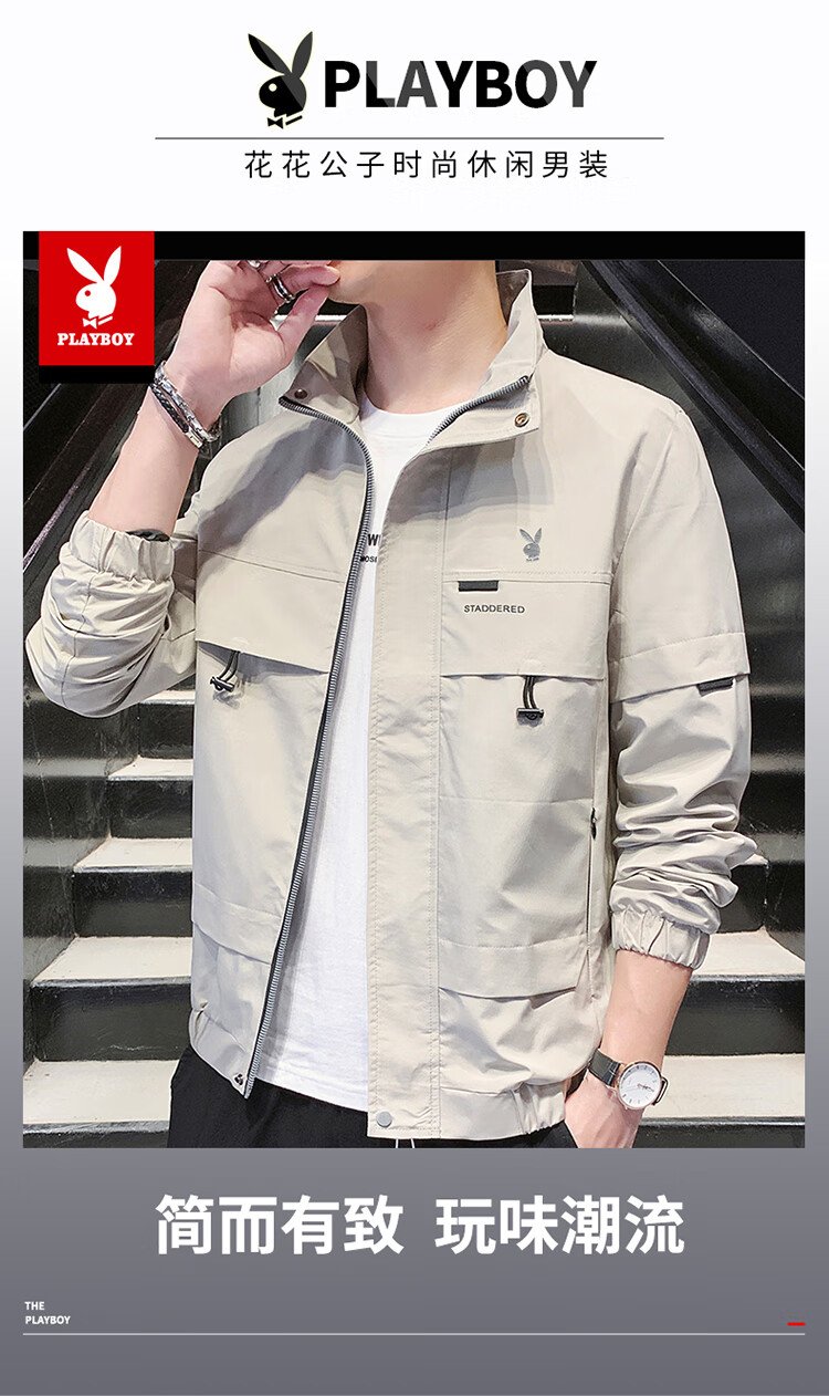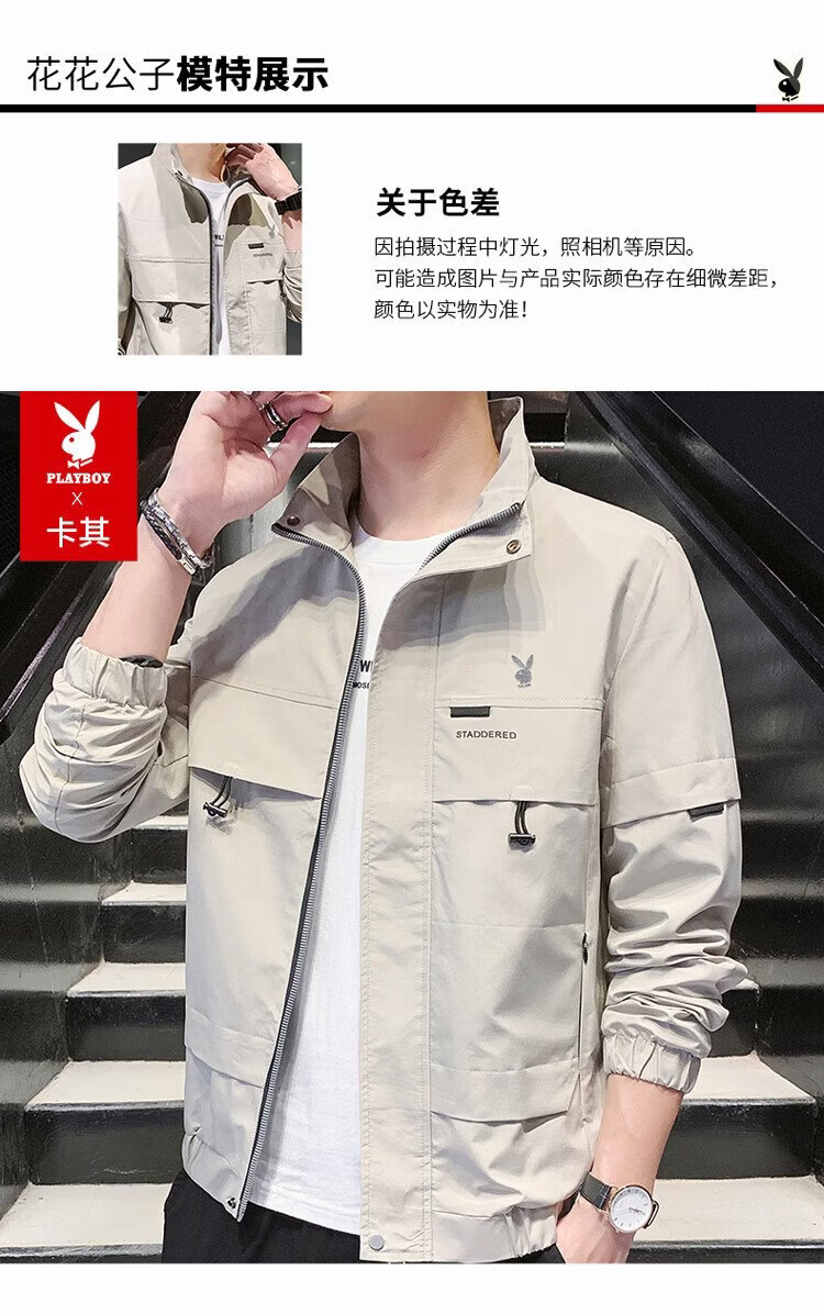 Playboy (PLAYBOY) jacket men's assault jacket men's spring and autumn men's casual workwear trendy tops Khaki XL