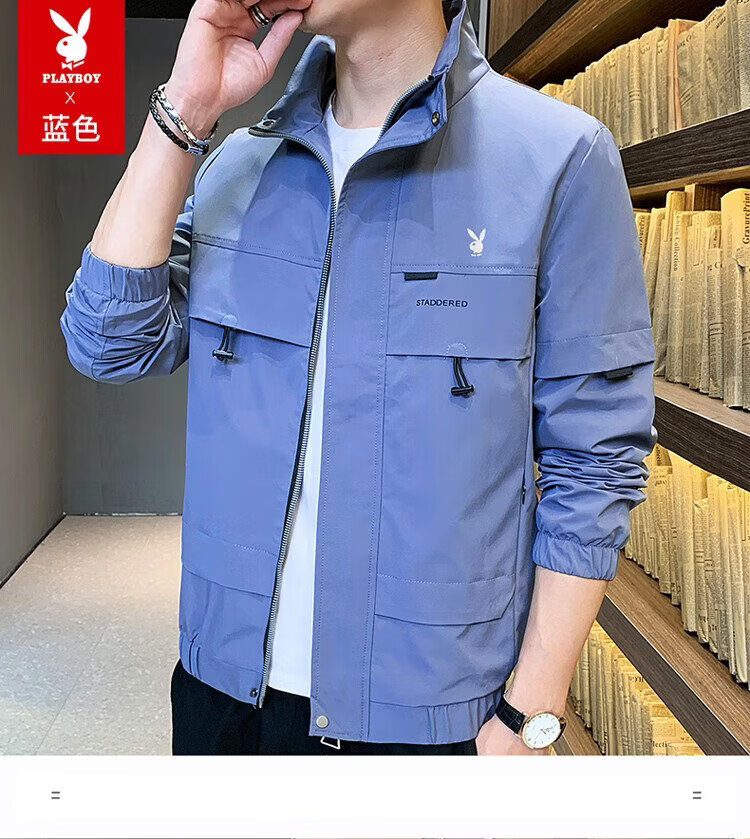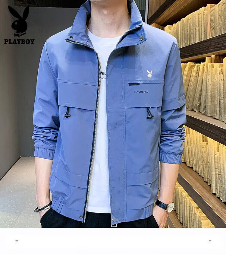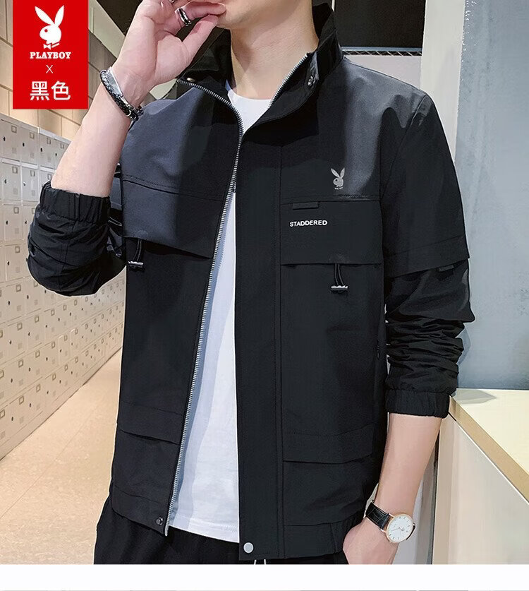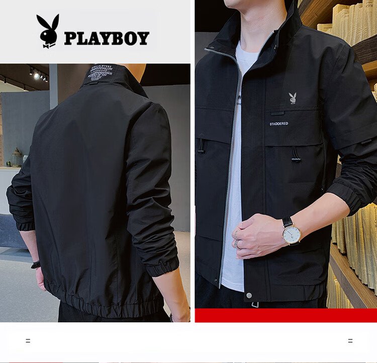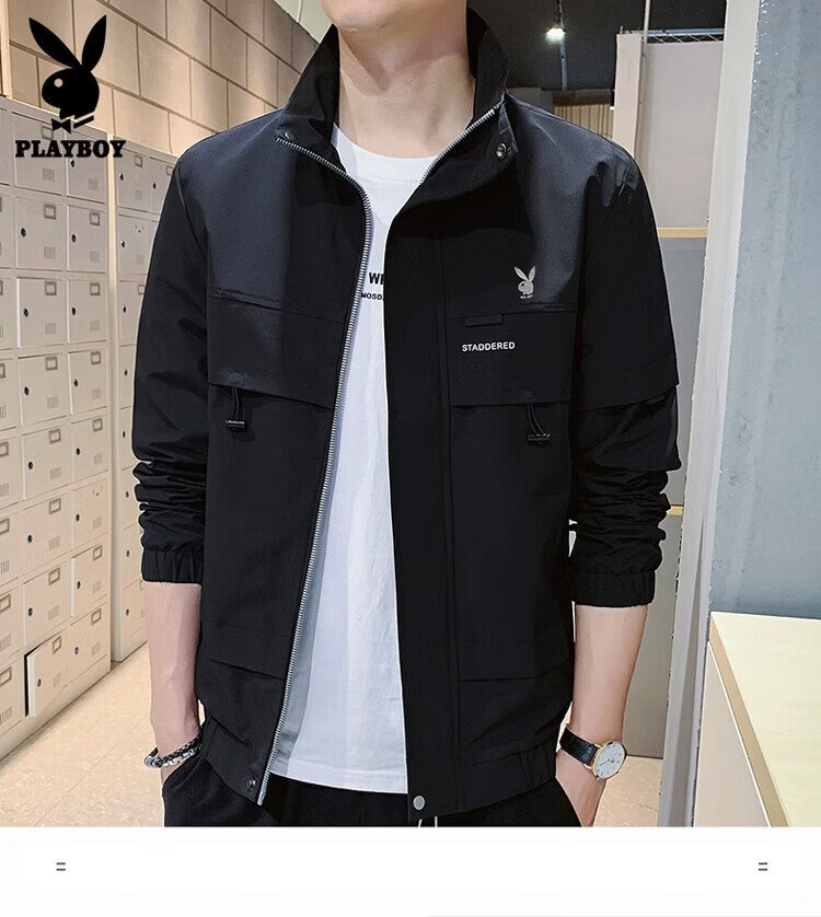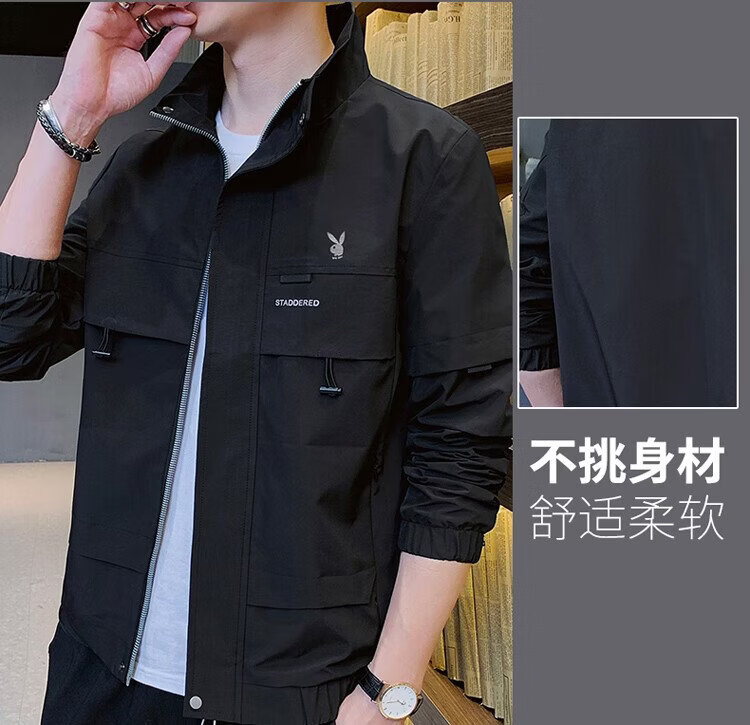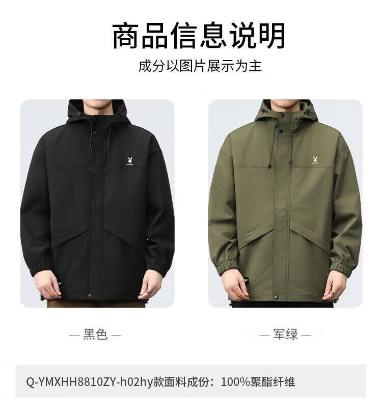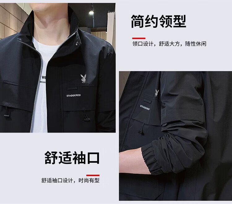 Playboy (PLAYBOY) jacket men's assault jacket men's spring and autumn men's casual workwear trendy tops Khaki XL