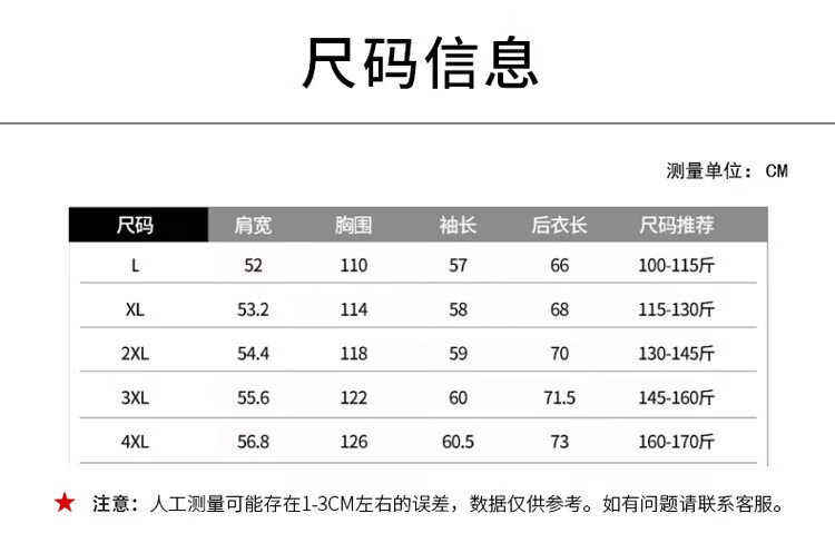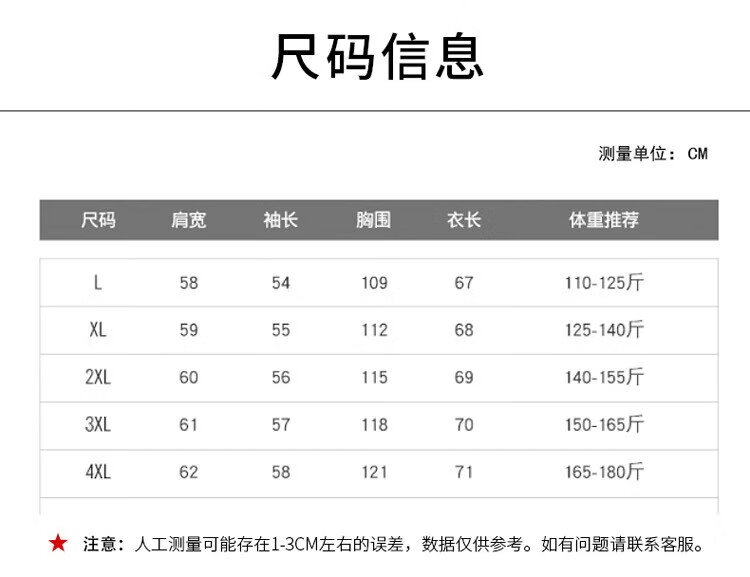 China (cm) 165 / 88-90 170 / 96-98 175 / 108-110 180 / 118-122 185 / 126-130