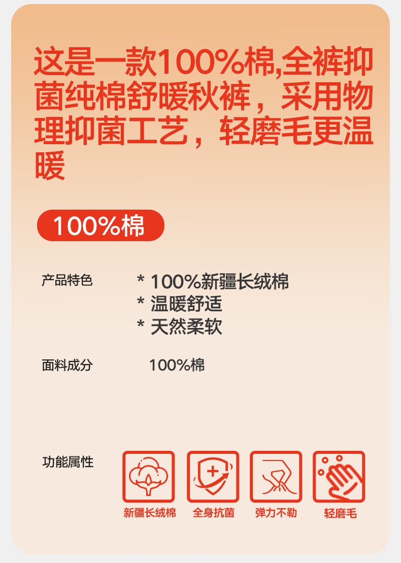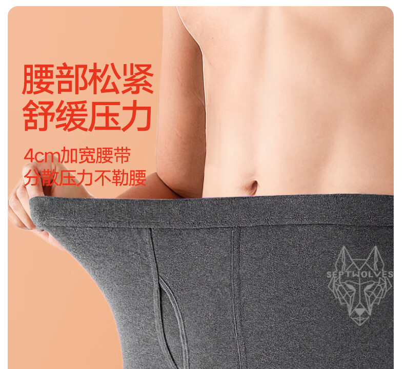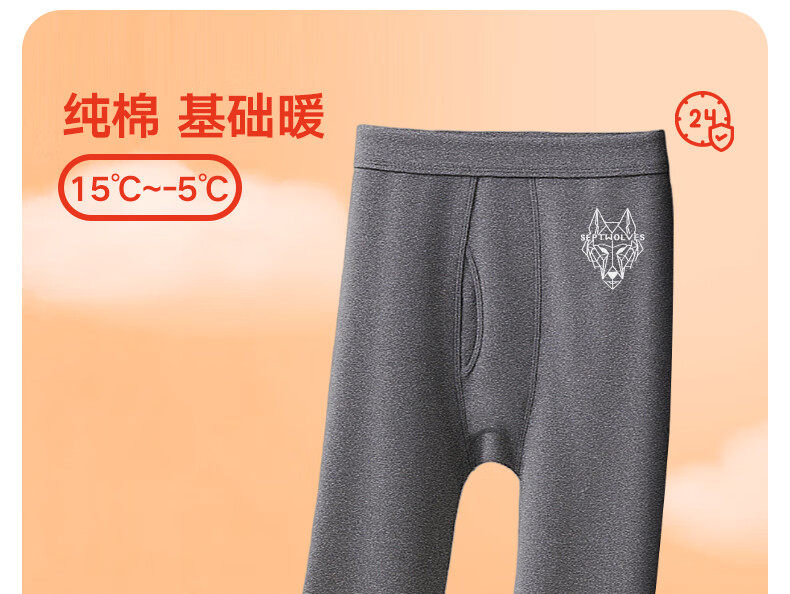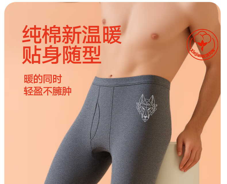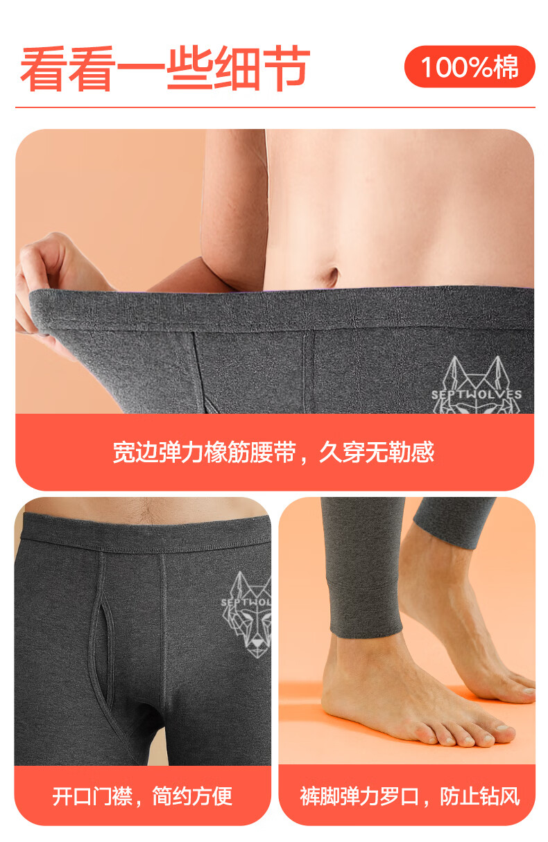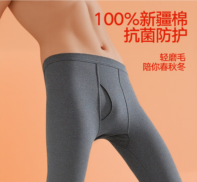 Septwolves 100% cotton antibacterial 2-piece long johns men's pure cotton antibacterial warm pants basic leggings