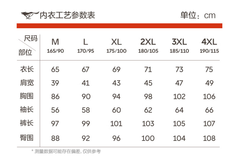 China (cm) 165 / 88-90 170 / 96-98 175 / 108-110 180 / 118-122 185 / 126-130