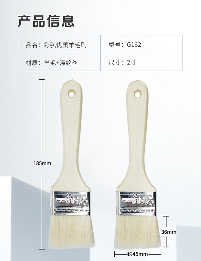Caihong 2-inch high-quality small wool brush, latex paint interior wall paint paint brush, wall paint wall brush tool set, soft-bristled dust removal and cleaning wooden handle row brush, 2 pack