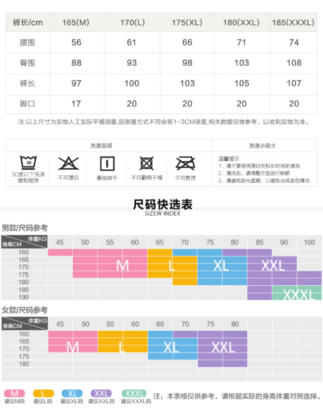 China (cm) 160-165/84-86 165-170 / 88-90 167-172 / 92-96 168-173 / 98-102 170-176 / 106-110
