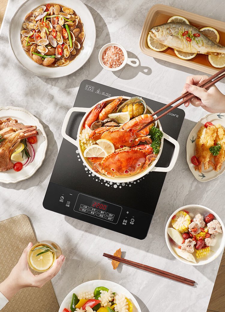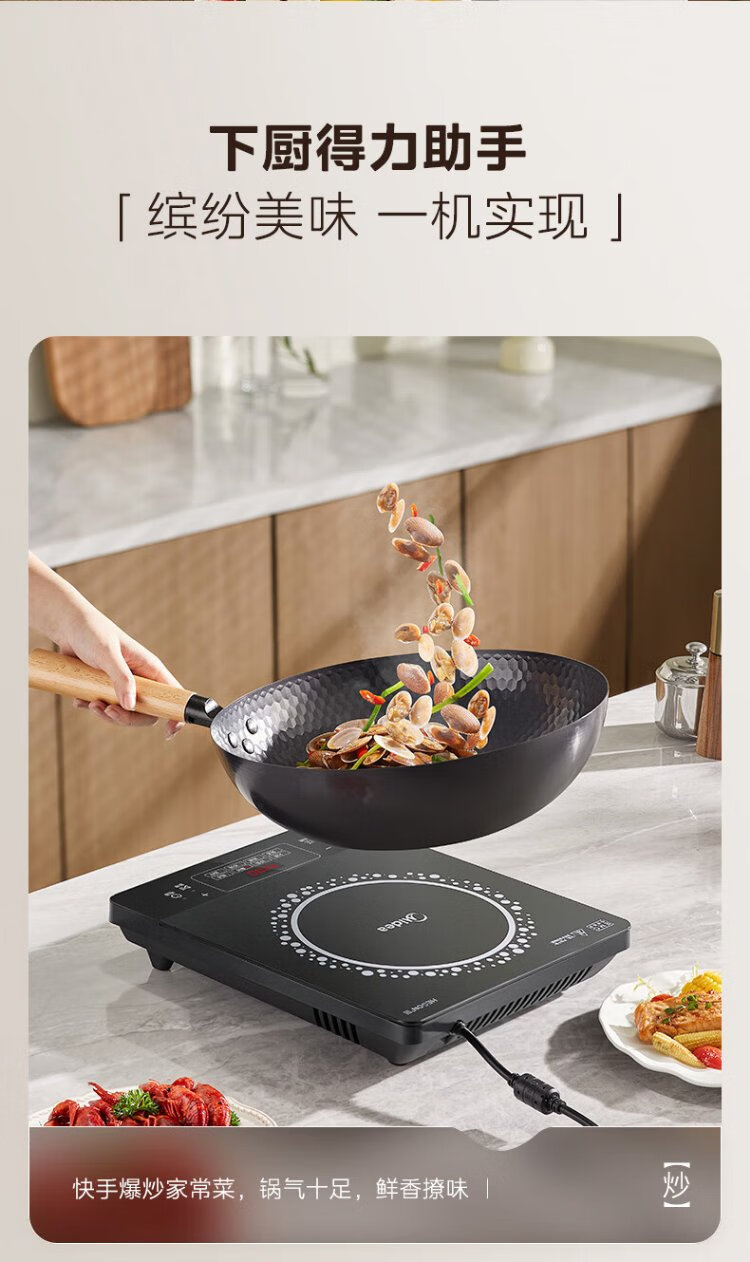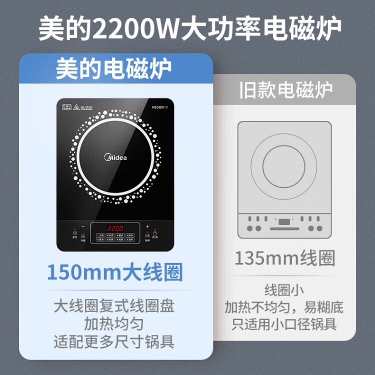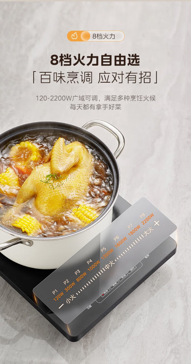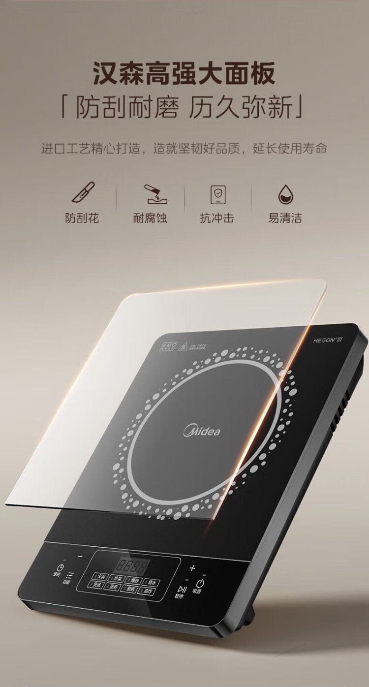 Midea induction cooker electric ceramic stove 2200W high-power household fierce stir-frying durable panel eight-speed firepower slim induction cooker hot pot state subsidy C22-RT22E01