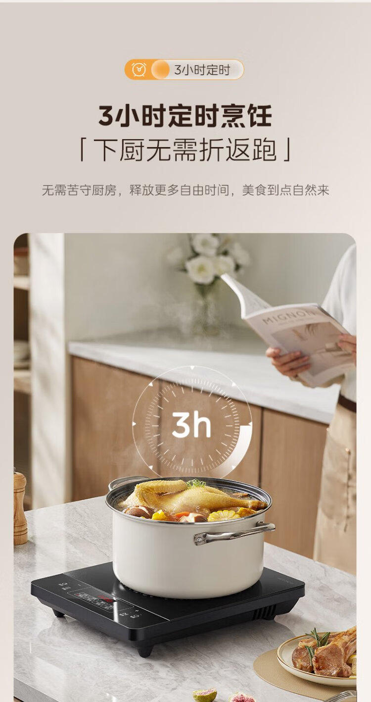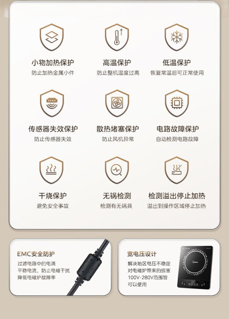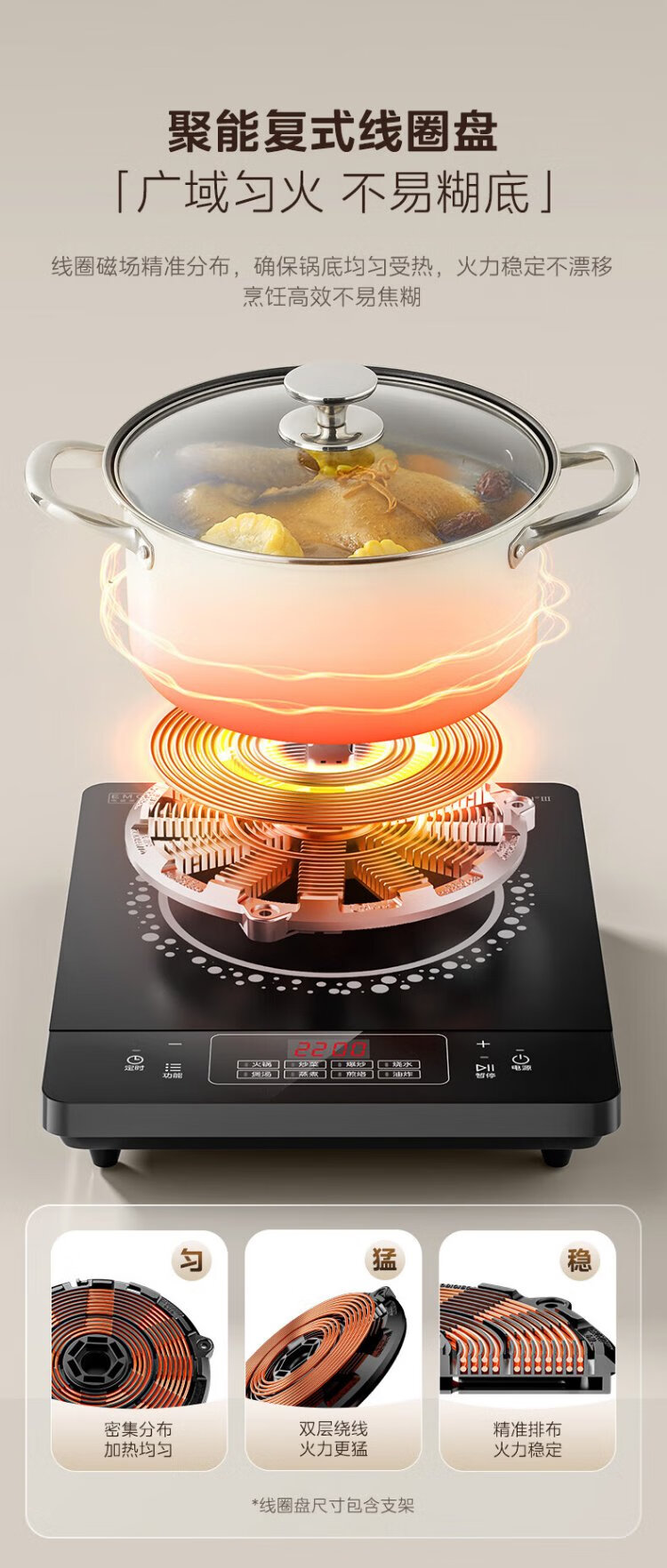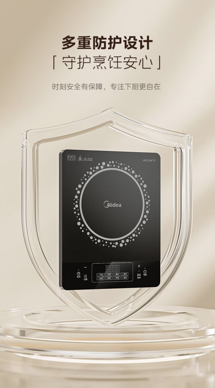 Midea induction cooker electric ceramic stove 2200W high-power household fierce stir-frying durable panel eight-speed firepower slim induction cooker hot pot state subsidy C22-RT22E01