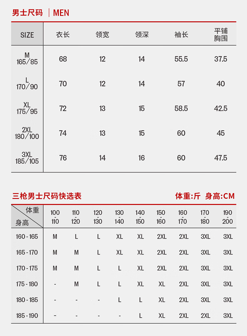 China (cm) 165 / 88-90 170 / 96-98 175 / 108-110 180 / 118-122 185 / 126-130