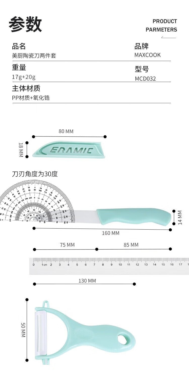 Maxcook ceramic knife, fruit knife, paring knife set, peeler, melon planer knife, kitchen tool two-piece set MCD032
