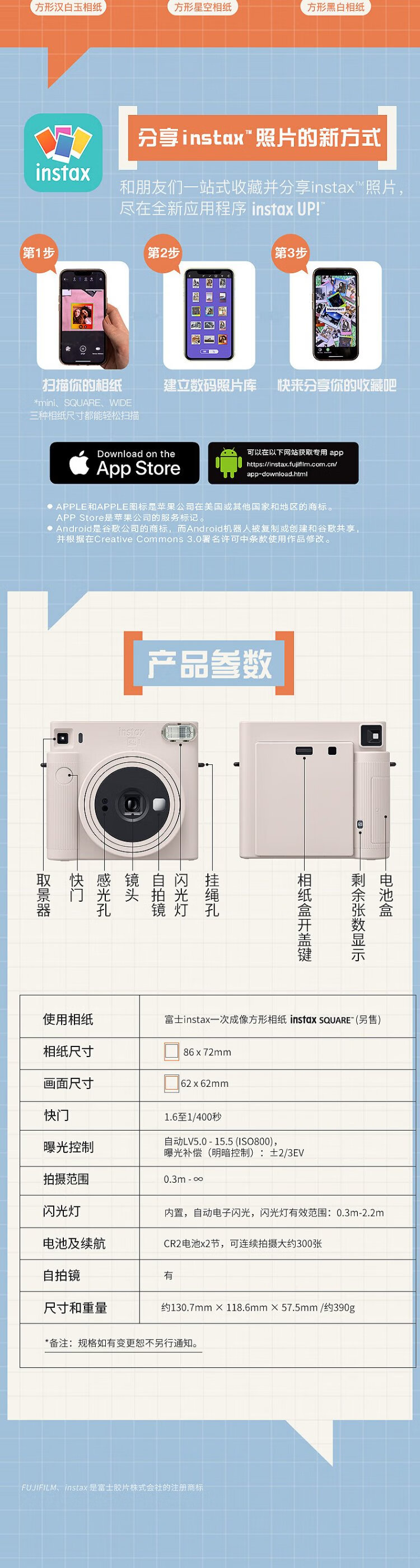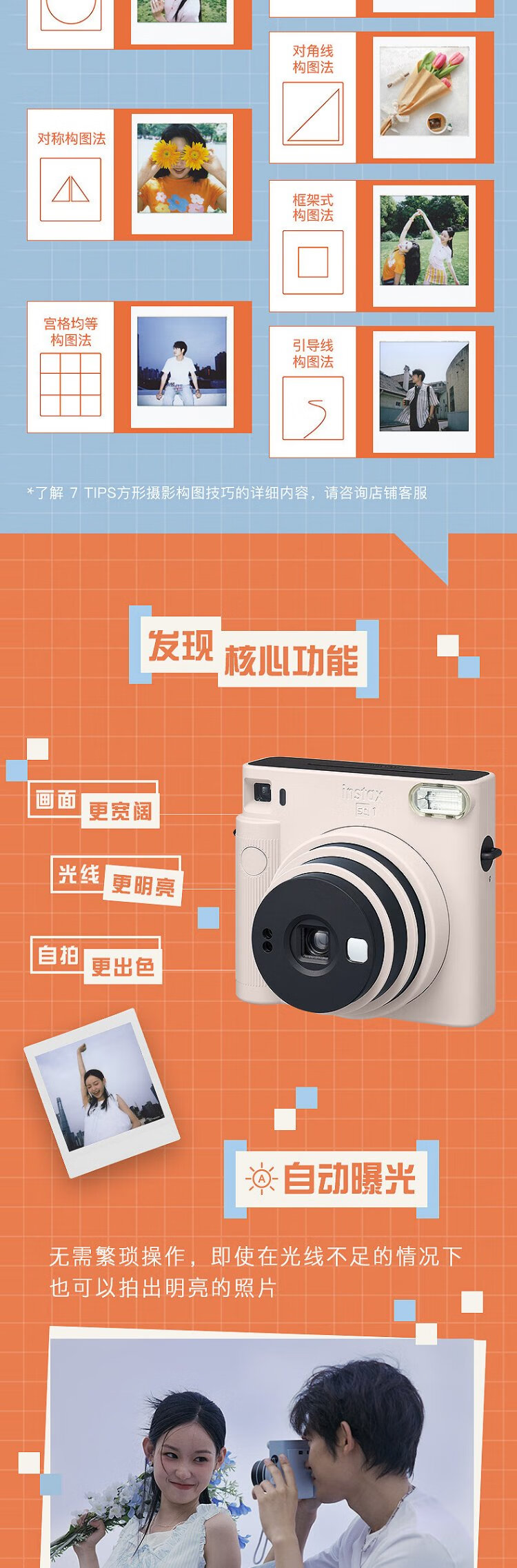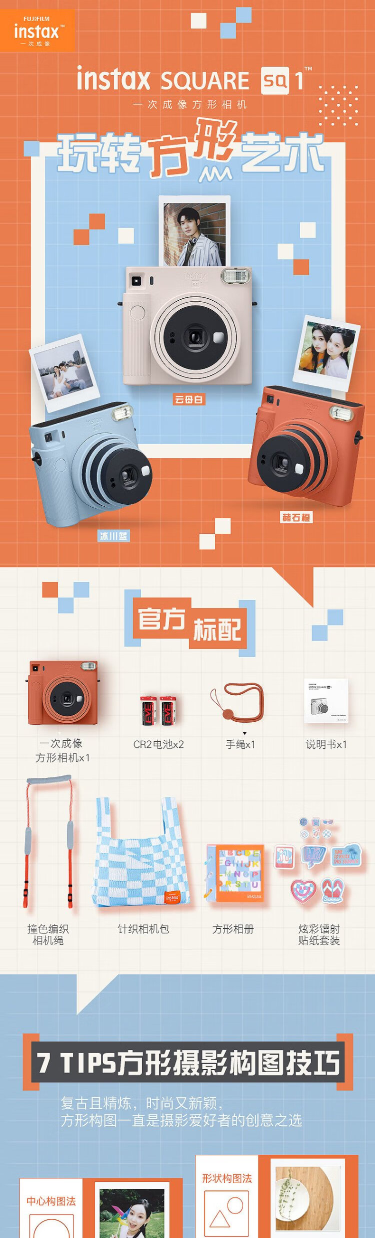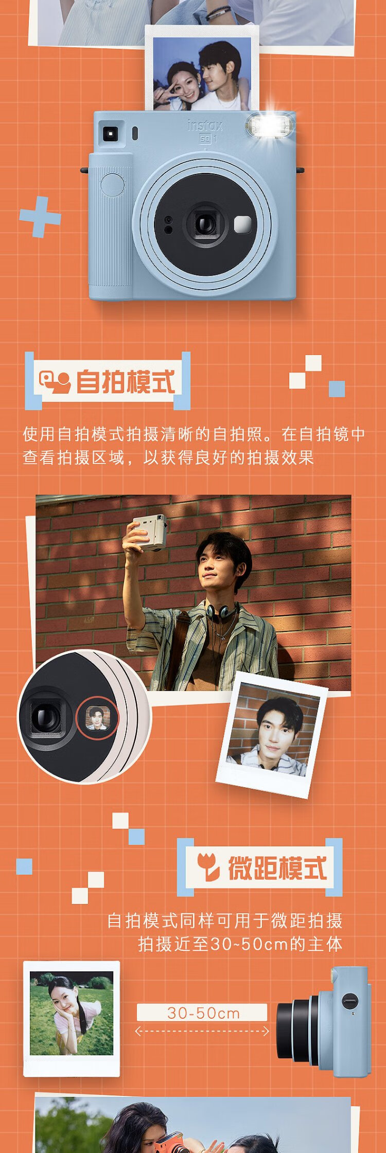 INSTAX Fuji instax instant camera SQUARE SQ1 ocher orange