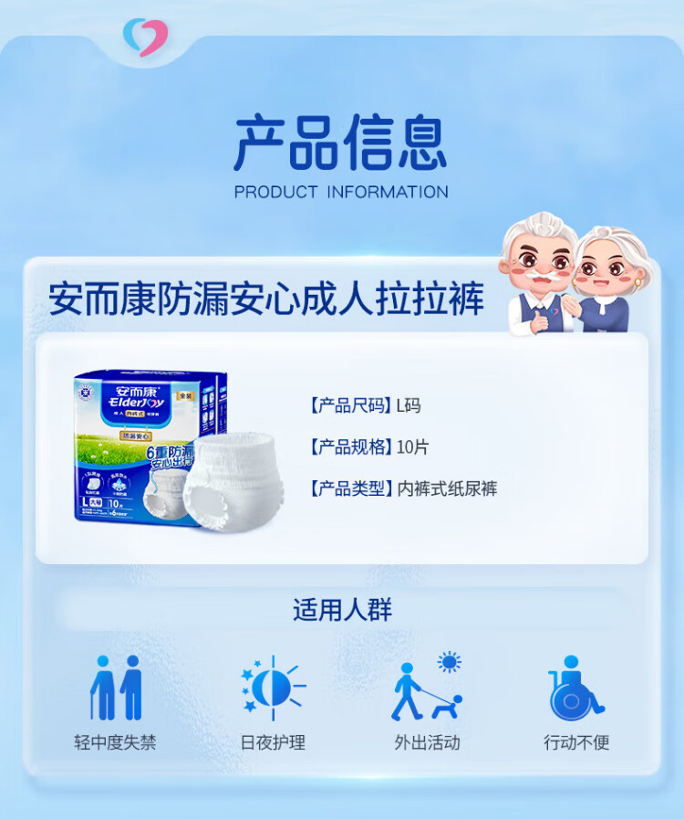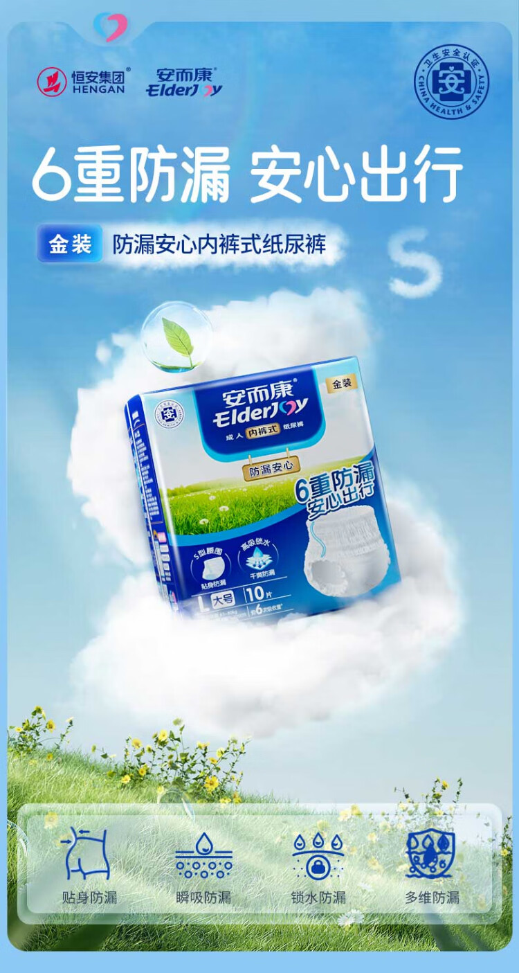 Elderjoy leak-proof and safe adult pull-up pants L10 piece hip size 95-120cm underwear style adult diapers easy to put on and take off