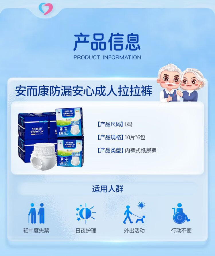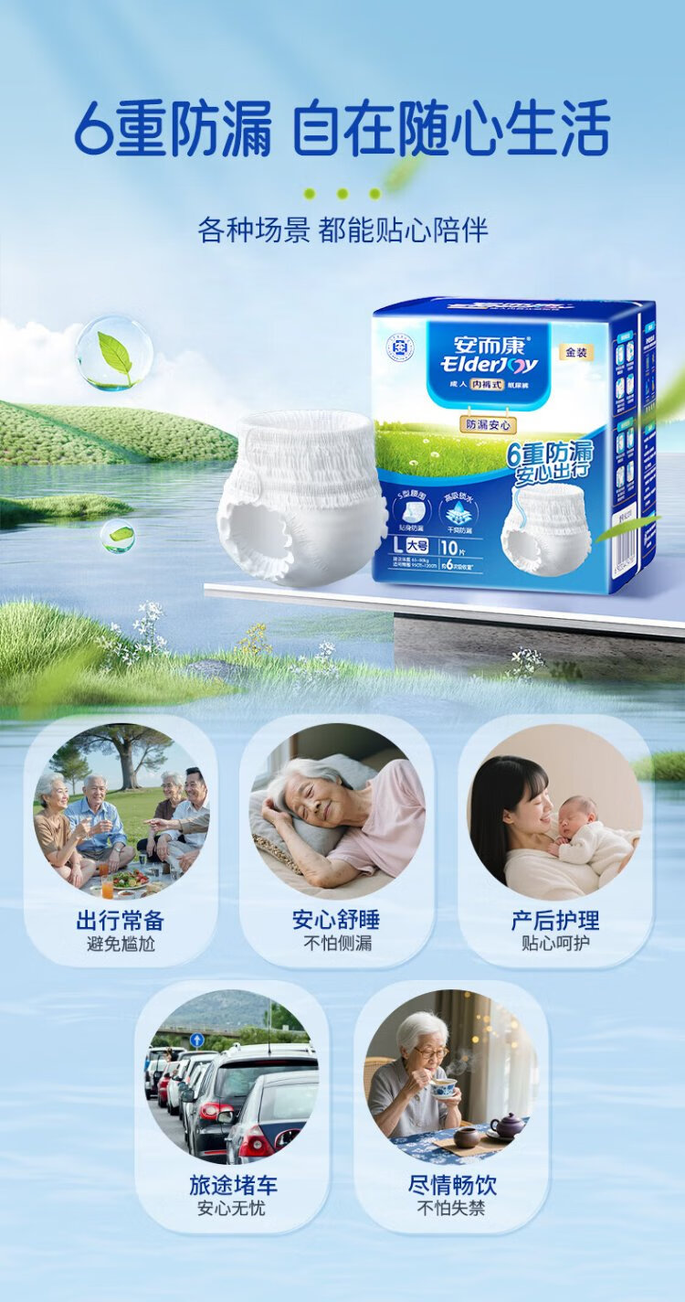 Elderjoy leak-proof and safe adult pull-up pants L60 pieces with hip circumference 95-120cm, underwear-style adult diapers, easy to put on and take off
