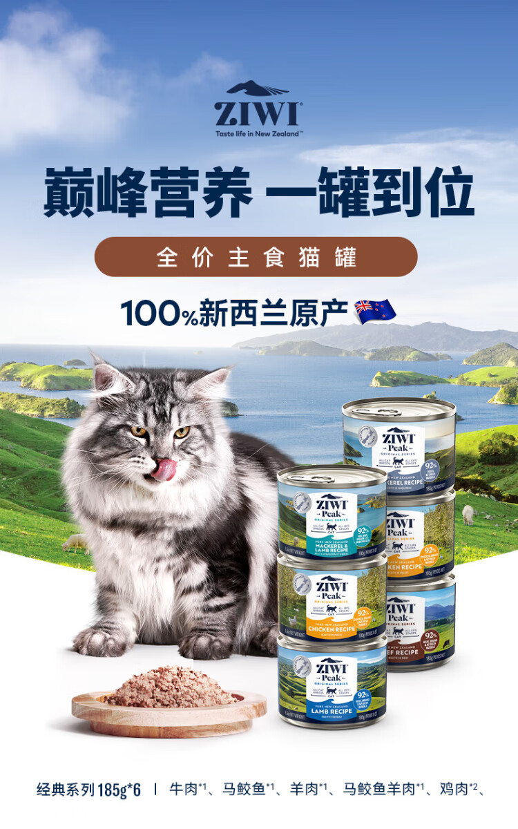 Ziyi Peak (ZIWI) консервированный основной корм для кошек, 185 г * 6 банок, основной корм со смешанными вкусами, влажный корм для кошек и котят, повсеместно импортируется из Новой Зеландии.