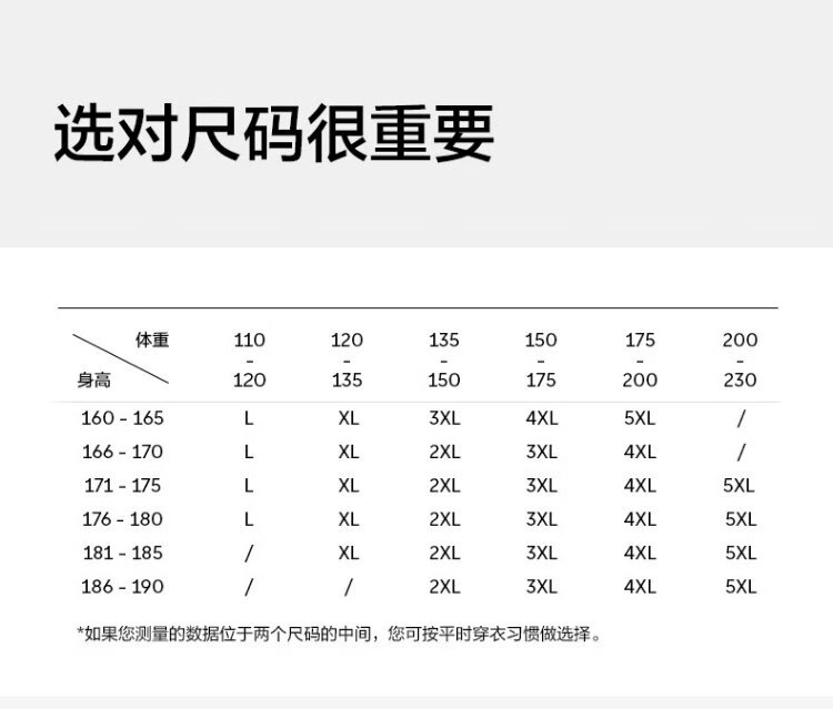 China (cm) 165 / 88-90 170 / 96-98 175 / 108-110 180 / 118-122 185 / 126-130