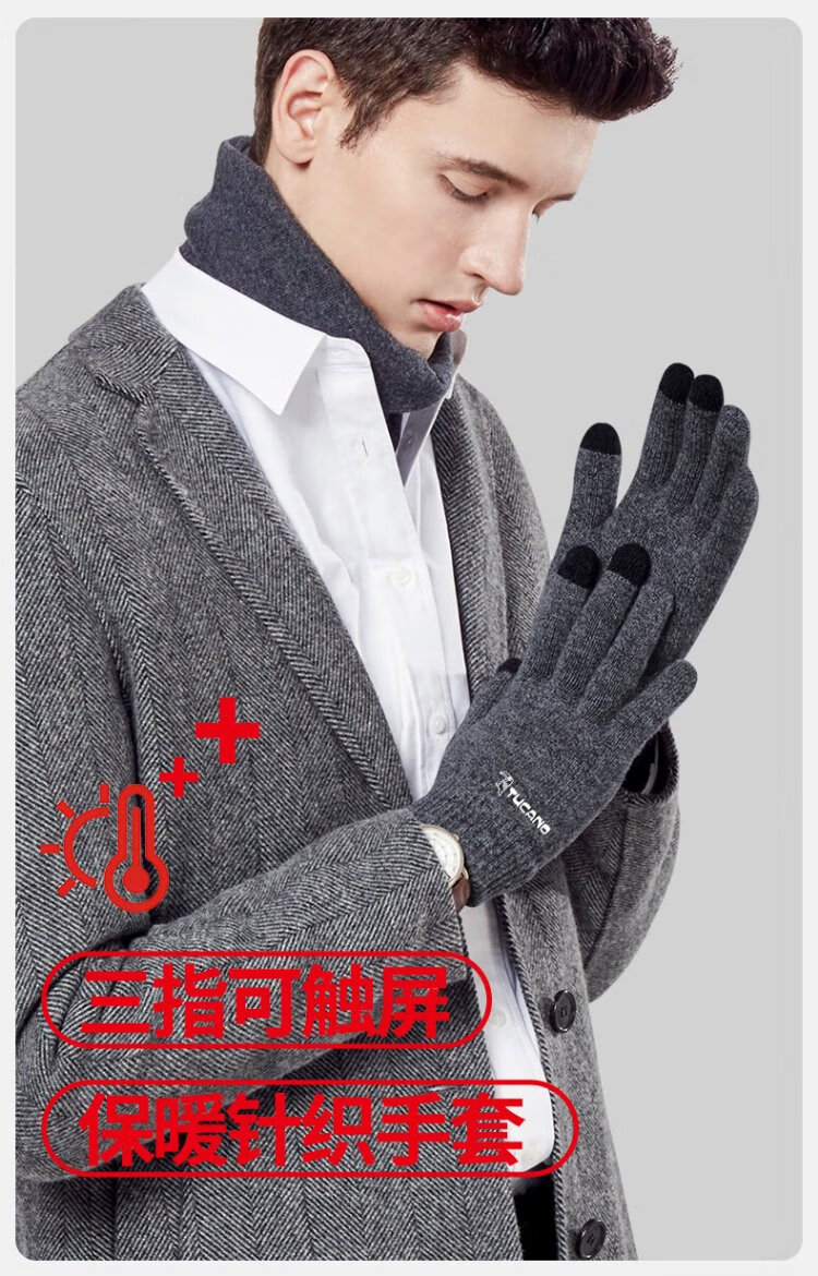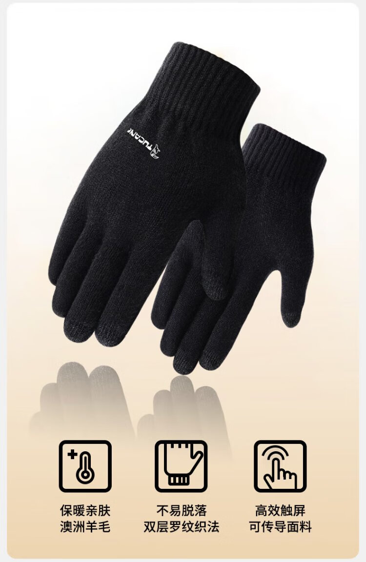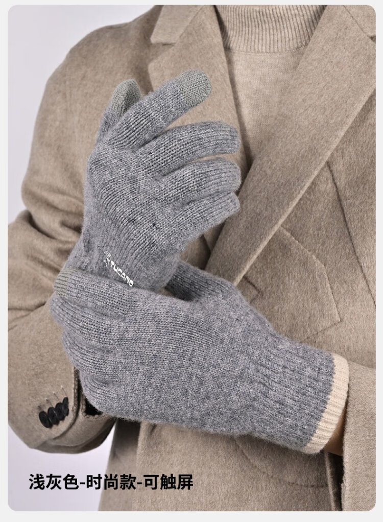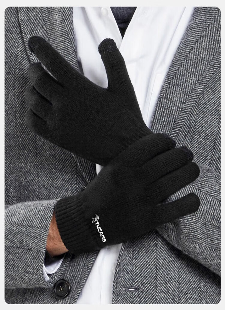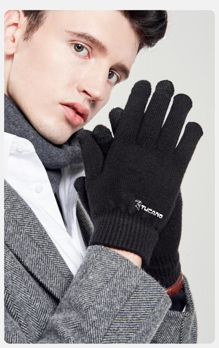 Woodpecker (TUCANO) wool gloves men's autumn and winter outdoor fashion touch screen cold-proof and warm thickened cycling and driving knitted wool gloves