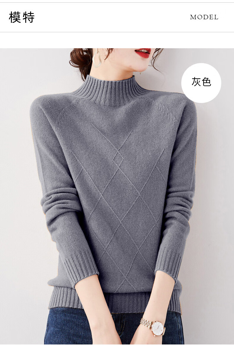Hengyuanxiang 100% wool autumn and winter long-sleeved women's wool sweater knitted sweater