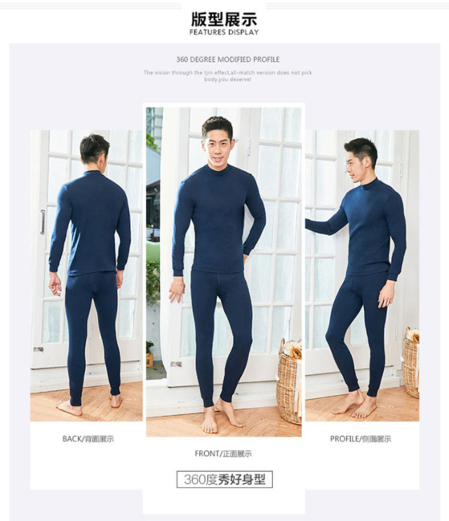 Yiershuang half turtleneck 100% cotton thermal underwear men's suit cotton autumn coat long trousers anti-static cotton sweater pants