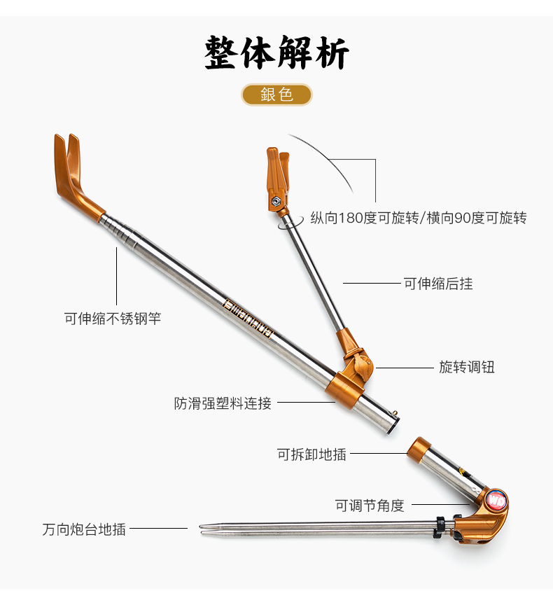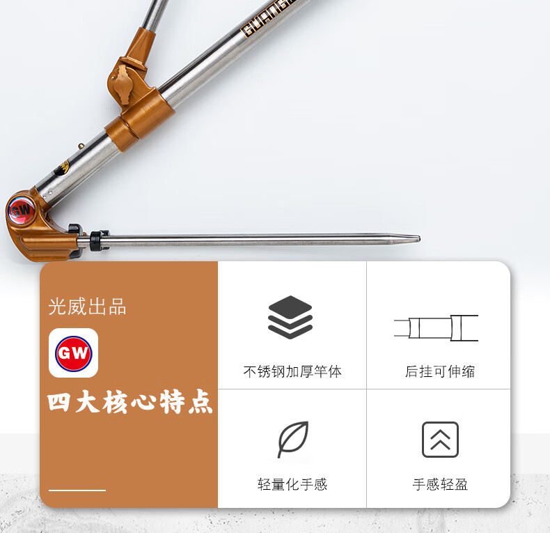 GW Guangwei fishing rod bracket 2.1 meters stainless steel bracket dual-purpose fort rack rod rack fishing gear supplies fishing accessories