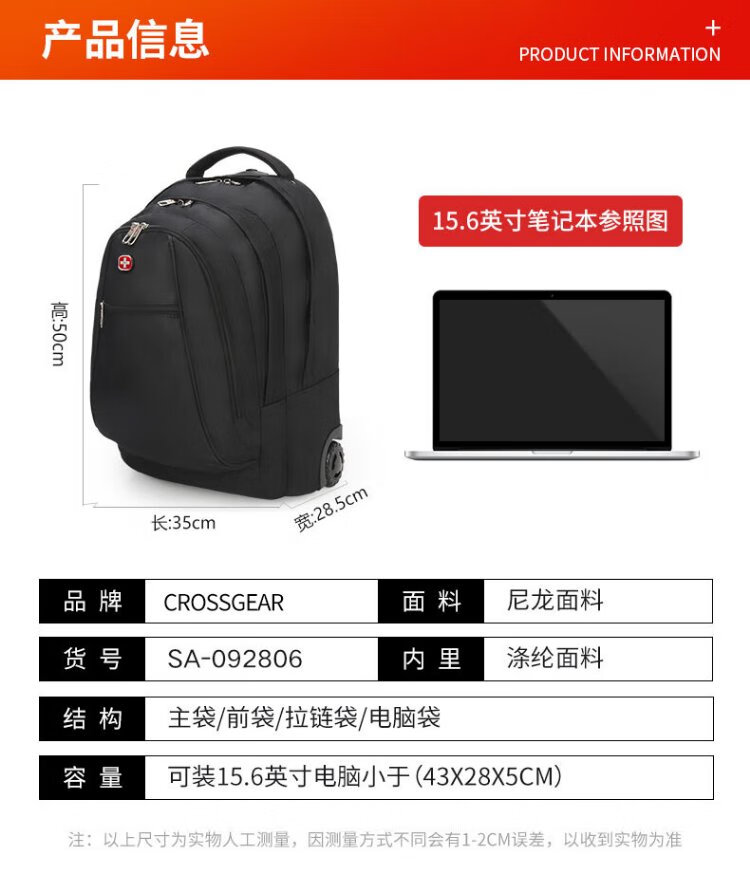 CROSSGEAR Travel Luggage Trolley Bag Business Large Capacity Backpack 15.6-inch Laptop Business Travel Bag for Men and Women