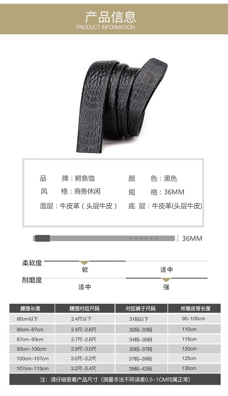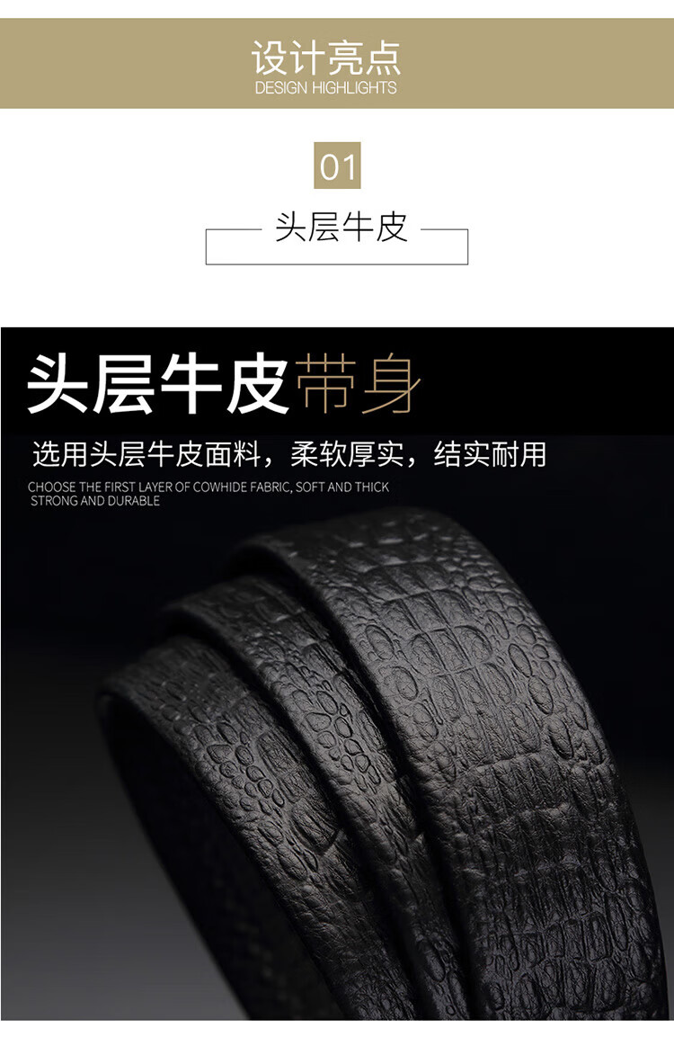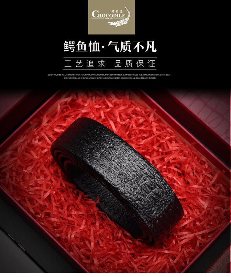 Crocodile shirt automatic buckle first layer cowhide without buckle belt body men's headless belt embossed crocodile full bone pattern 2953