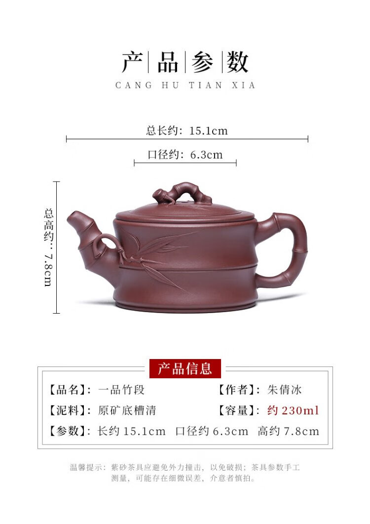 Hidden Pot World Government Subsidy Yixing Zisha Tea Set Teapot Bamboo Knot Pot Purely Handmade Zisha Pot First-Class Bamboo Segment