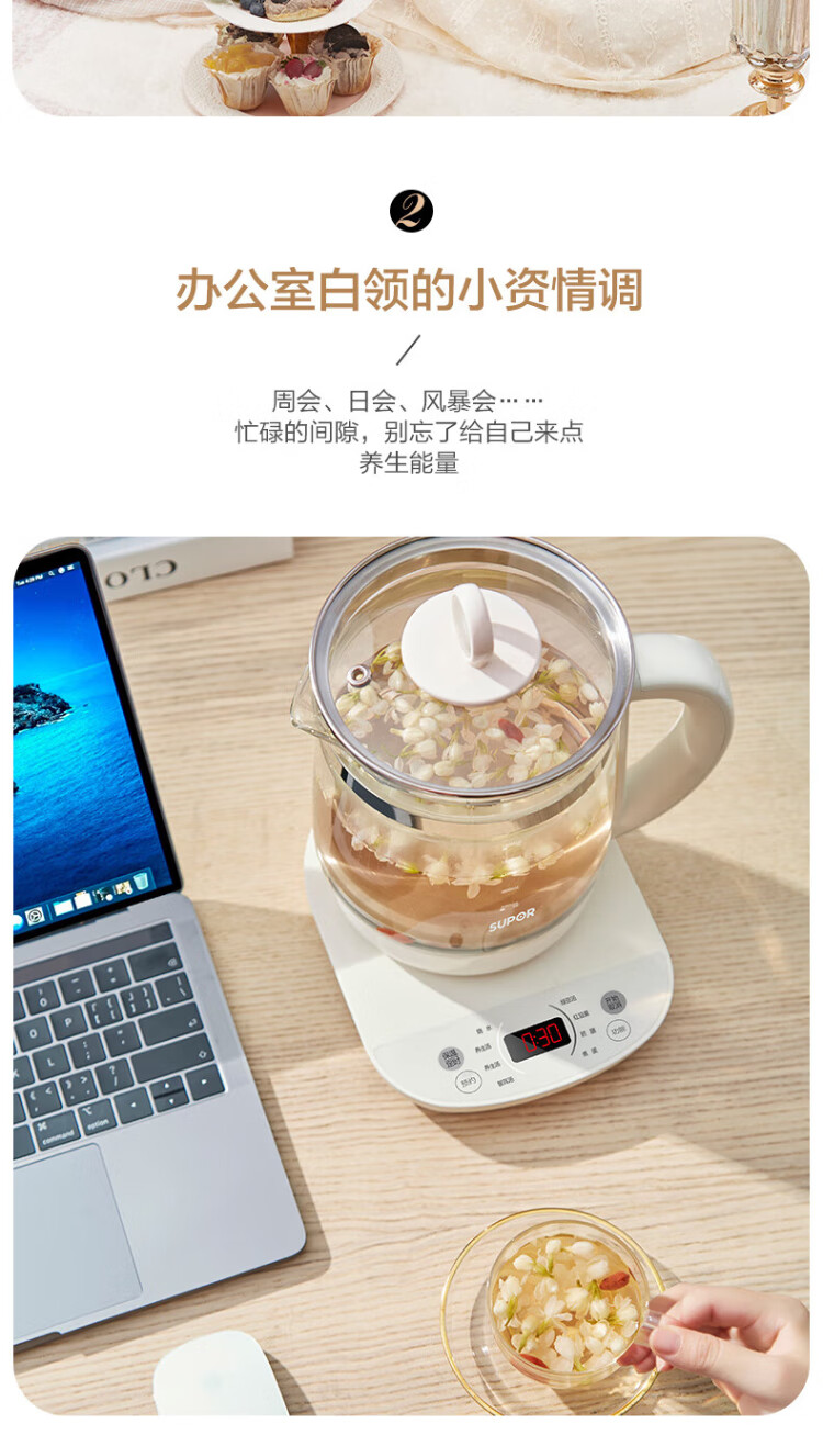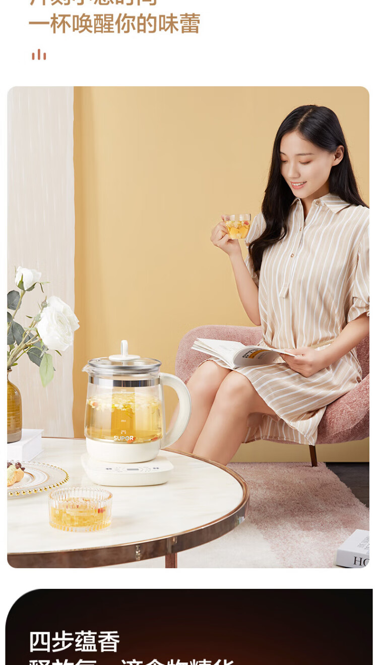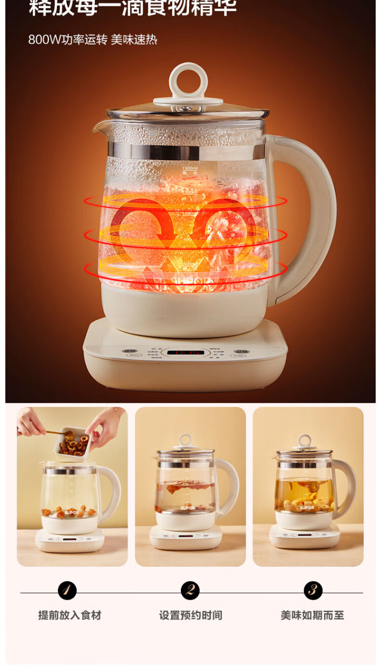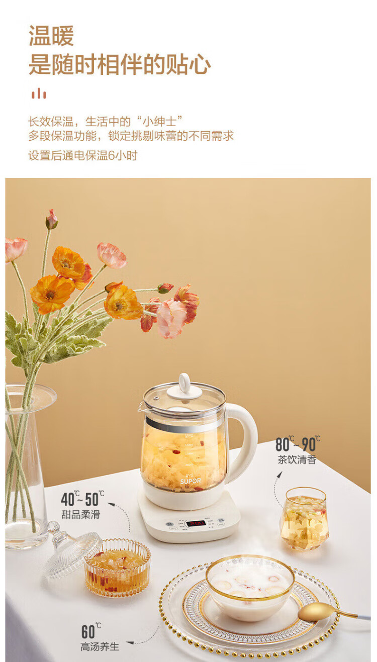 SUPOR health pot 1.5L teapot flower teapot electric kettle kettle electric kettle boiling kettle thermal insulation teapot glass electric teapot SW-15YJ33B