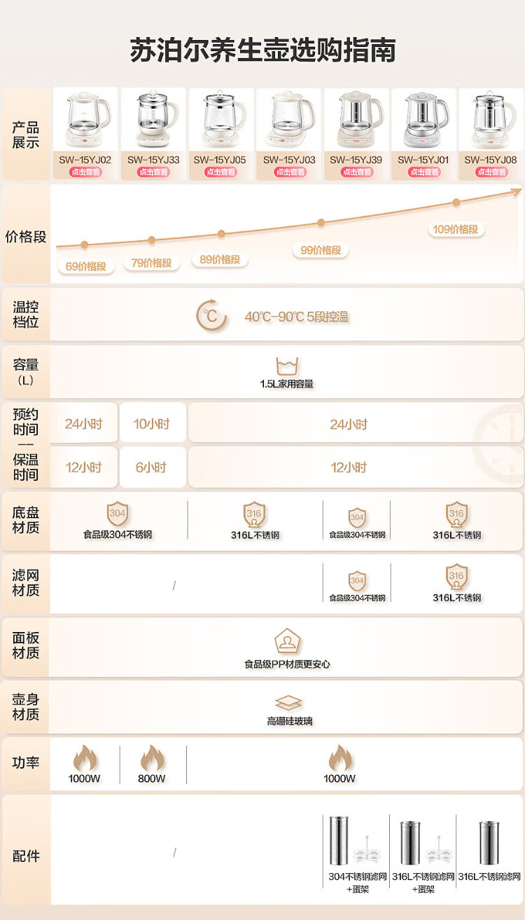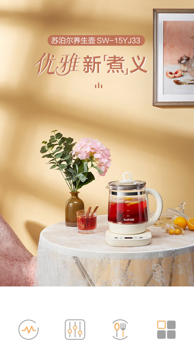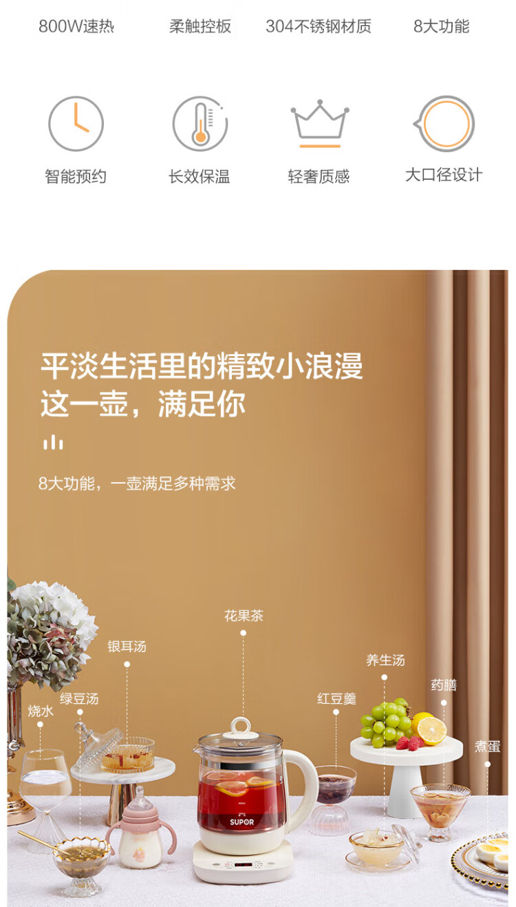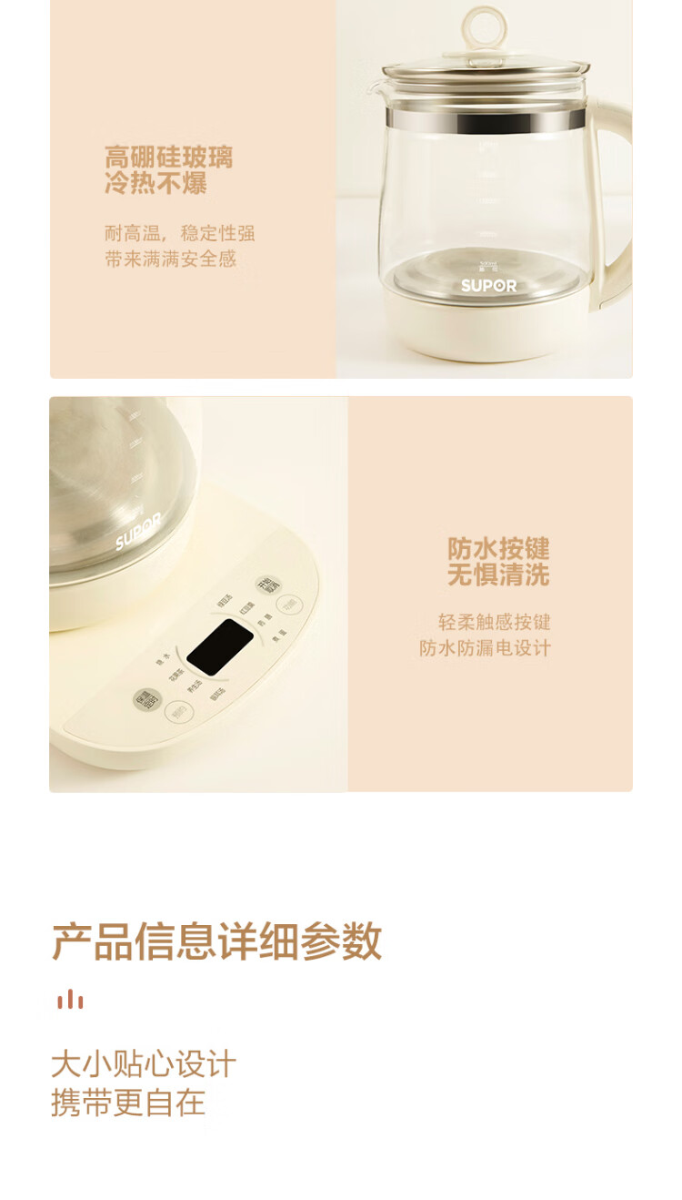 SUPOR health pot 1.5L teapot flower teapot electric kettle kettle electric kettle boiling kettle thermal insulation teapot glass electric teapot SW-15YJ33B