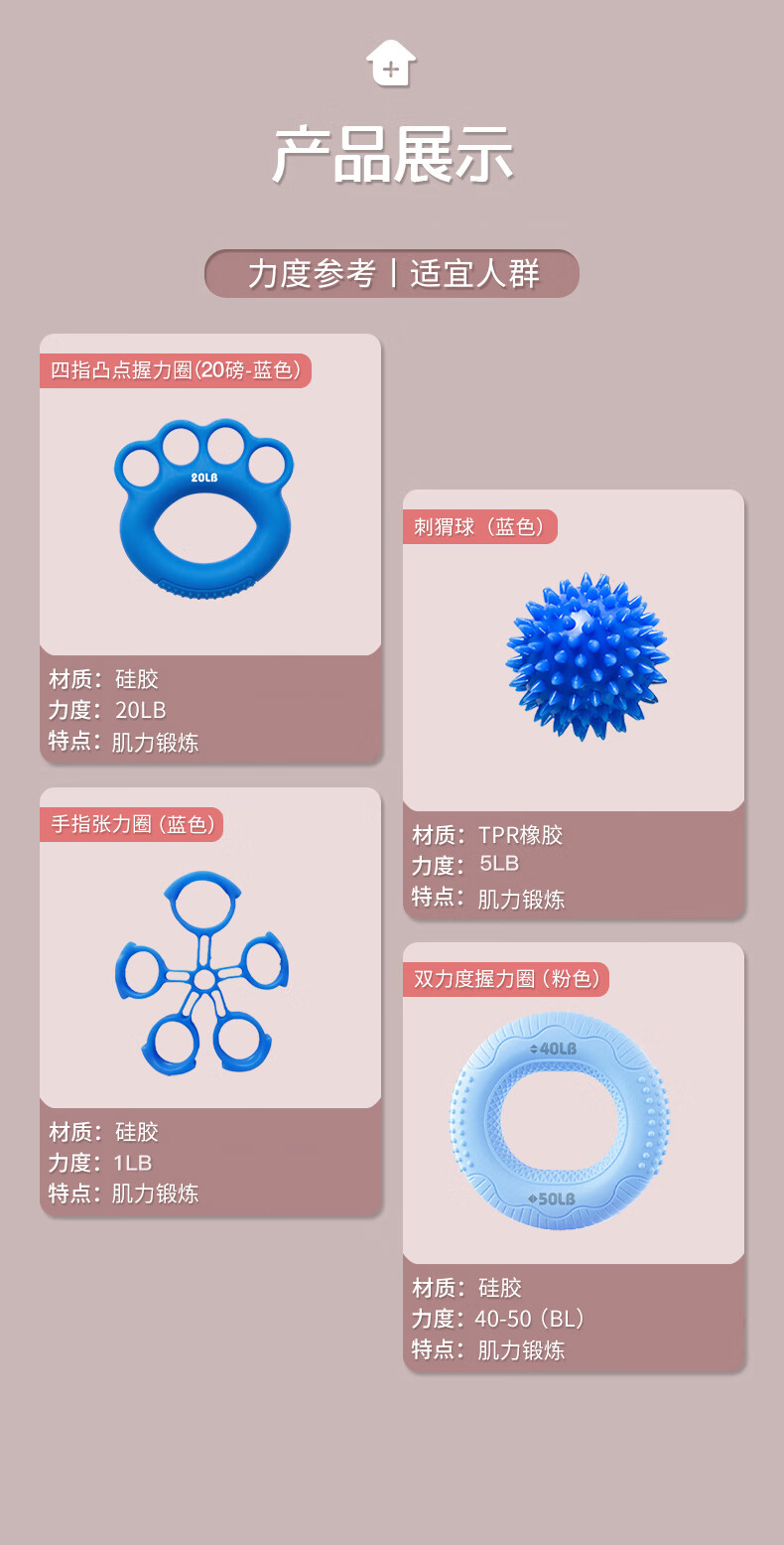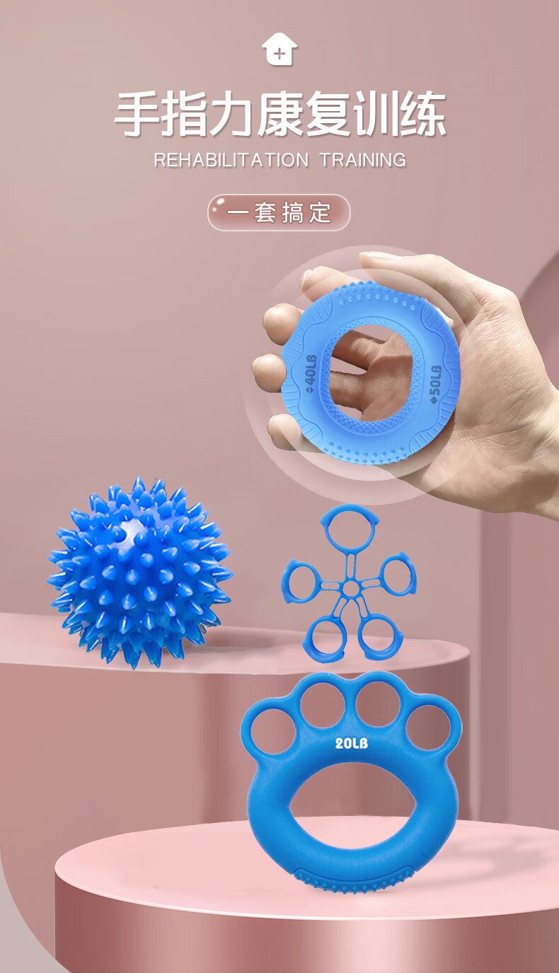 Duweck Grip Ball Silicone Grip Ring Combination 4-piece Set Hand Strength Training Rehabilitation Finger Fitness 1-50 Pounds Blue