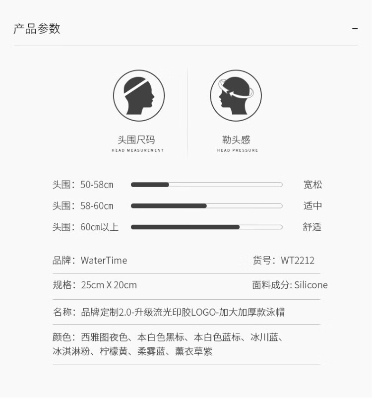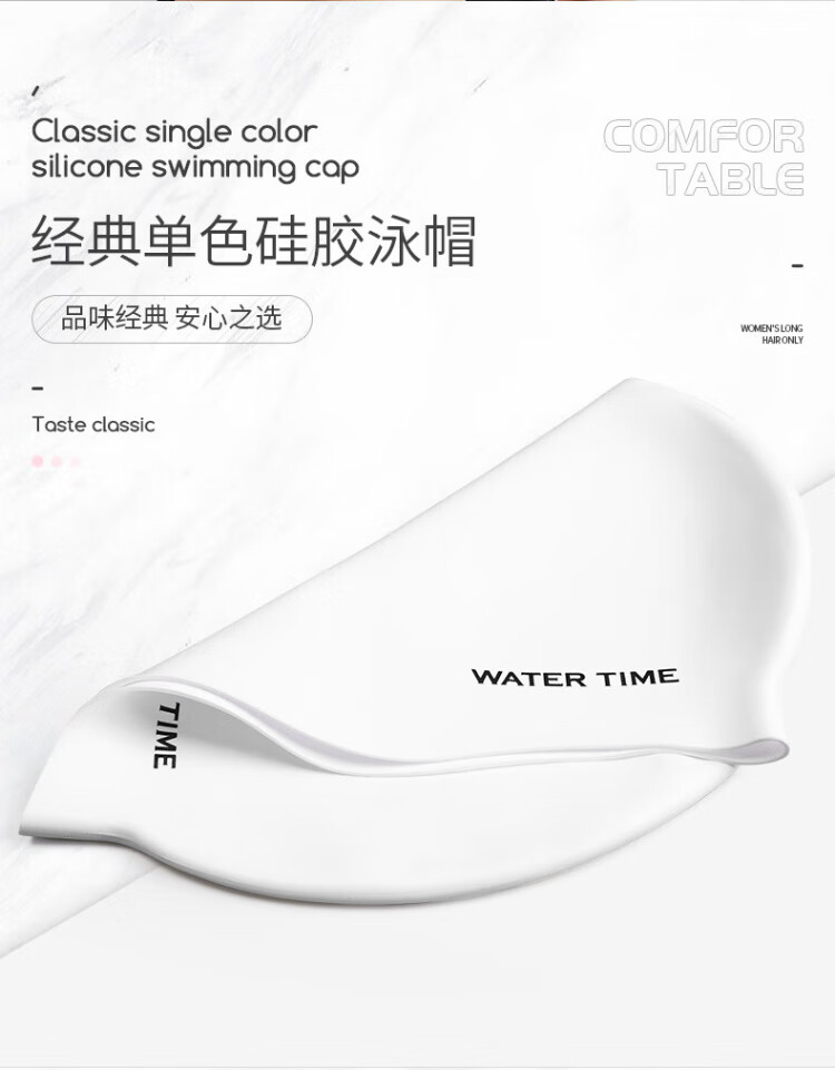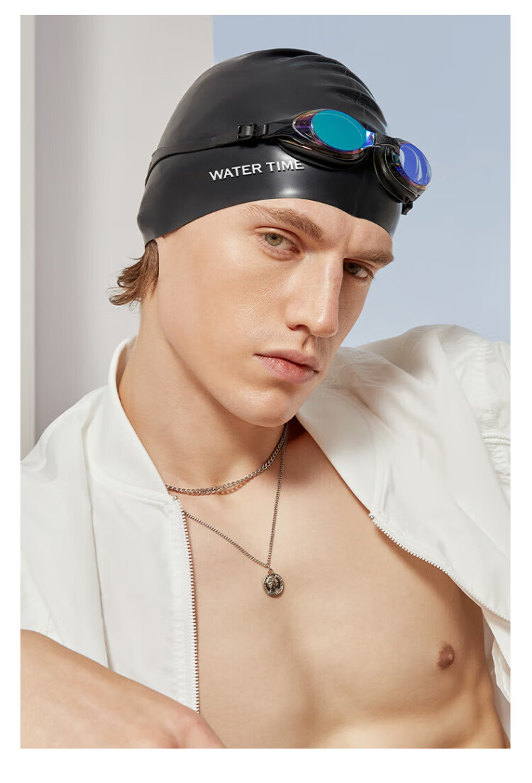 WATERTIME/Shuichuan swimming cap silicone swimming cap for men and women with long hair, adult large ear protection, high elasticity, comfortable and non-constricting swimming cap