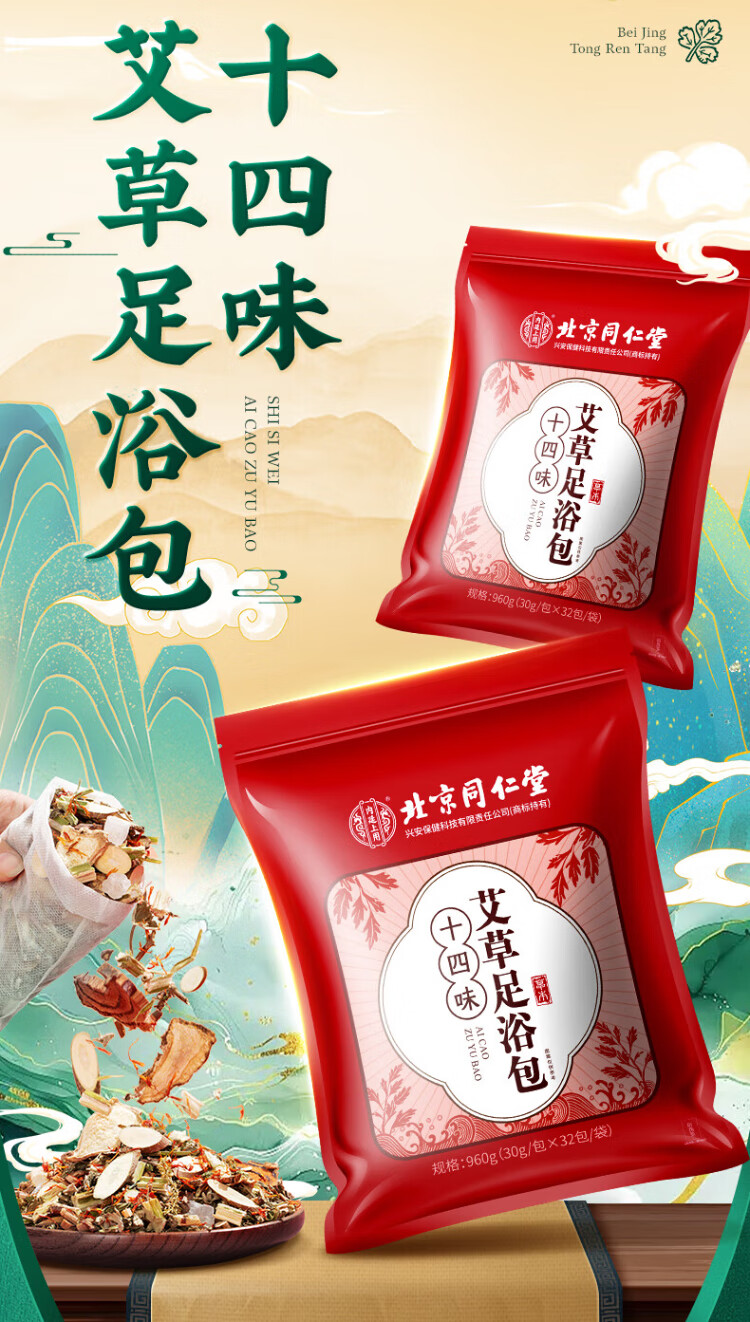 Tongrentang foot bath package used in the inner court, mugwort mugwort foot bath bag foot bath pill, Yao bath bag foot bath powder, unisex