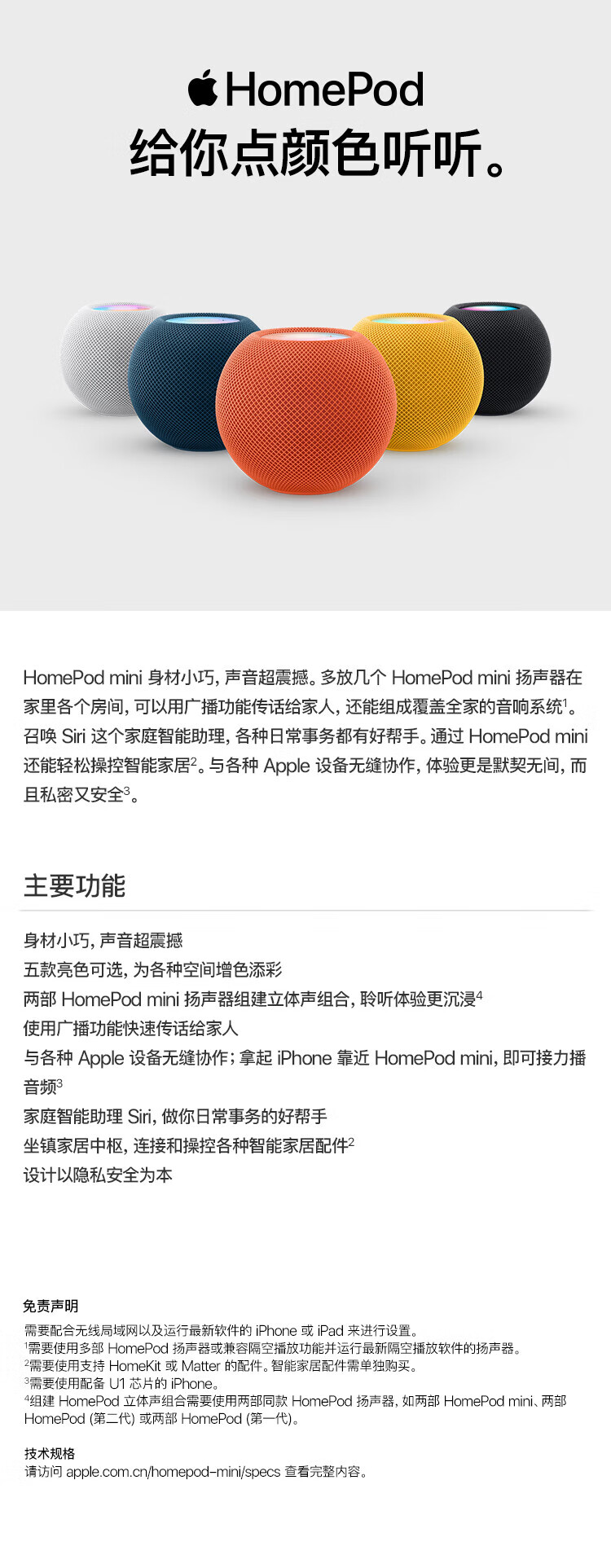 Apple/Apple HomePod mini smart audio Bluetooth speaker-white Apple audio speaker smart home hub