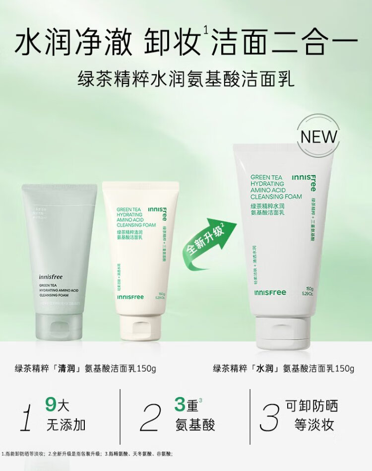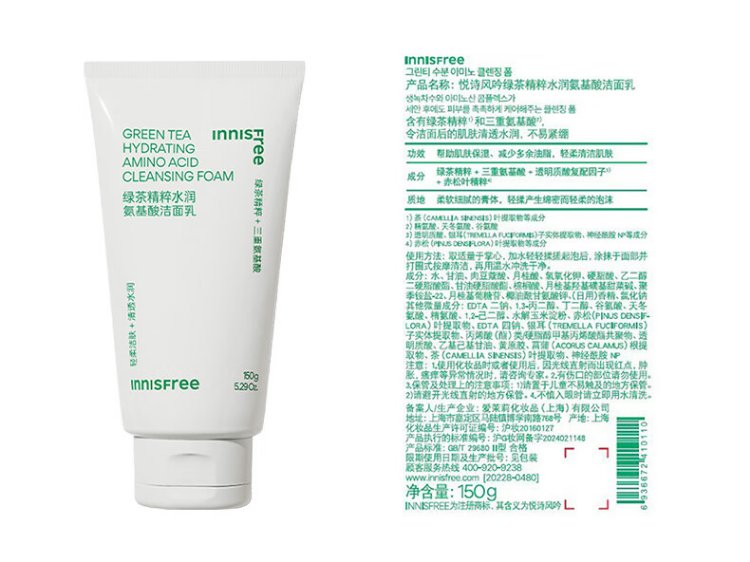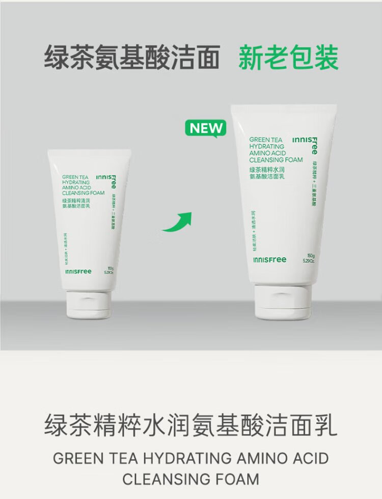 Innisfree green tea facial cleanser 150g*2 amino acid dense foam men and women oil control cleansing and moisturizing