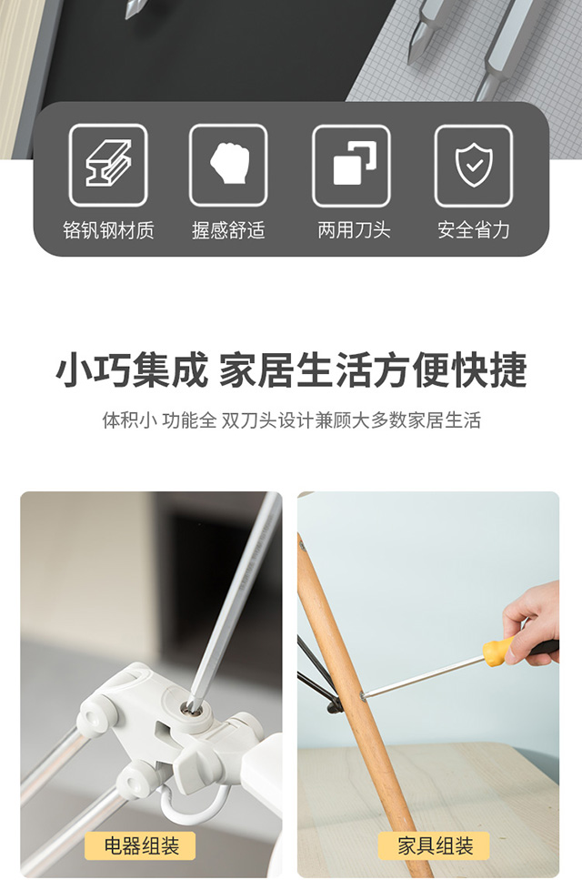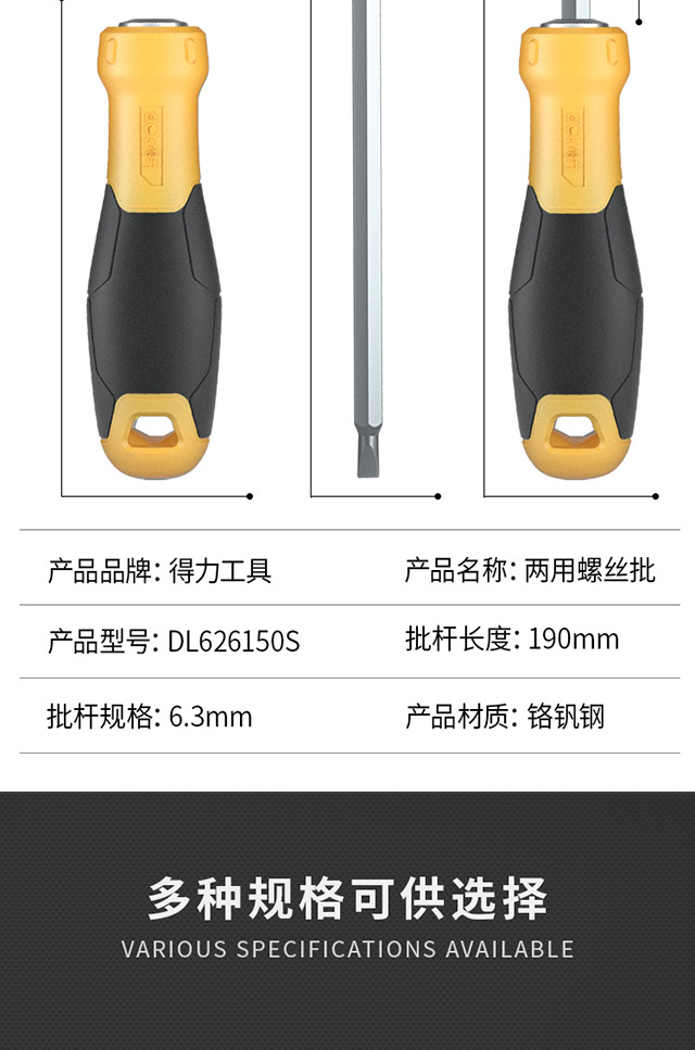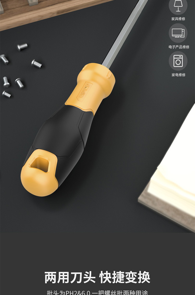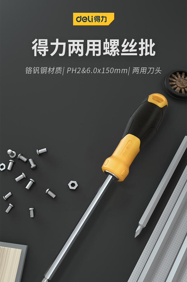 Deli rubber handle dual-purpose screwdriver screwdriver cross-shaped double-head screwdriver computer installation tool 6*150mm