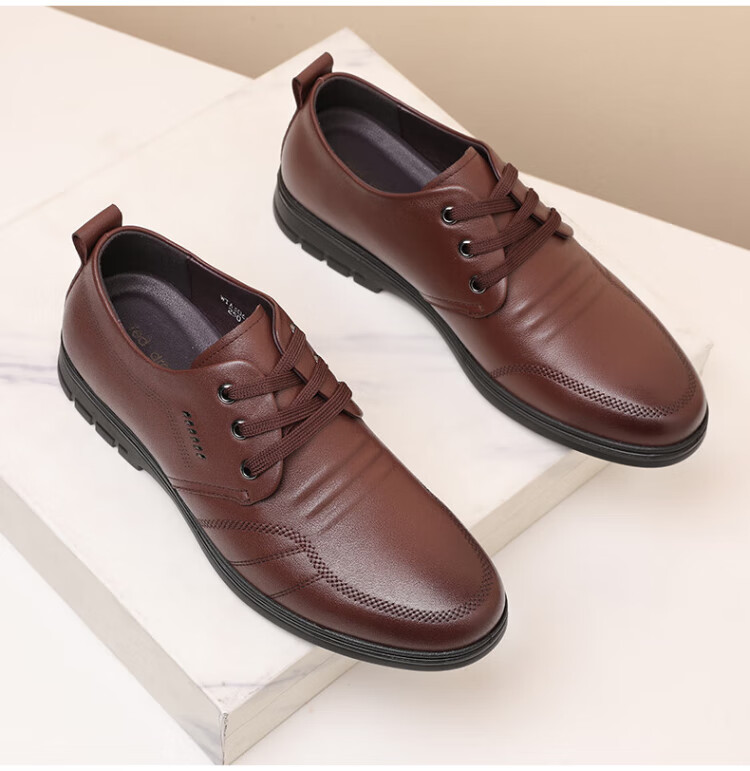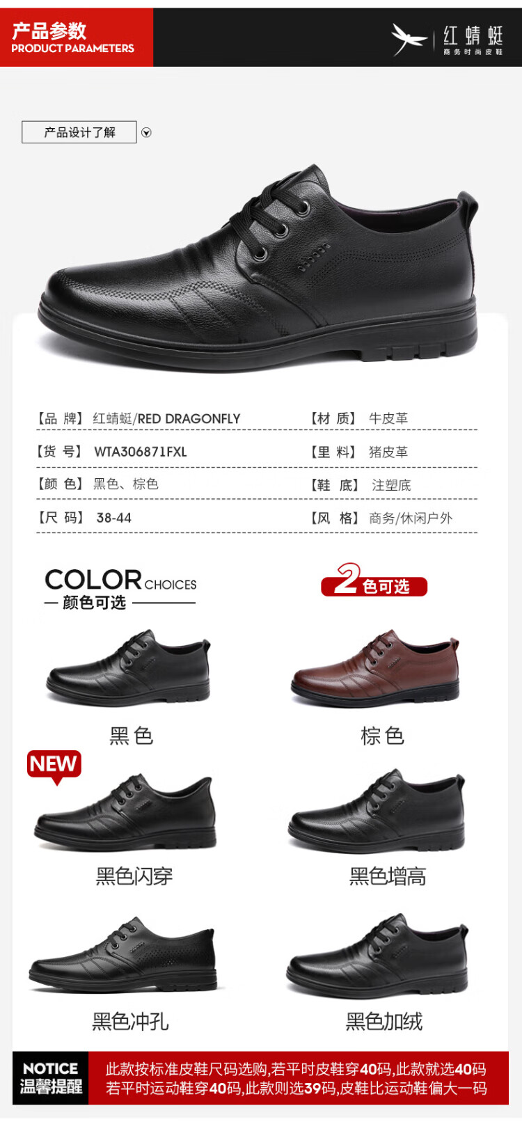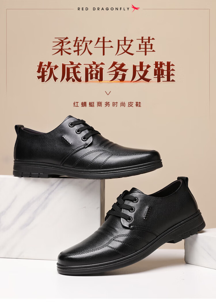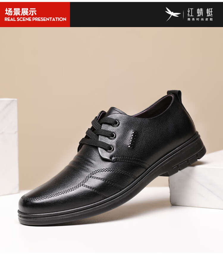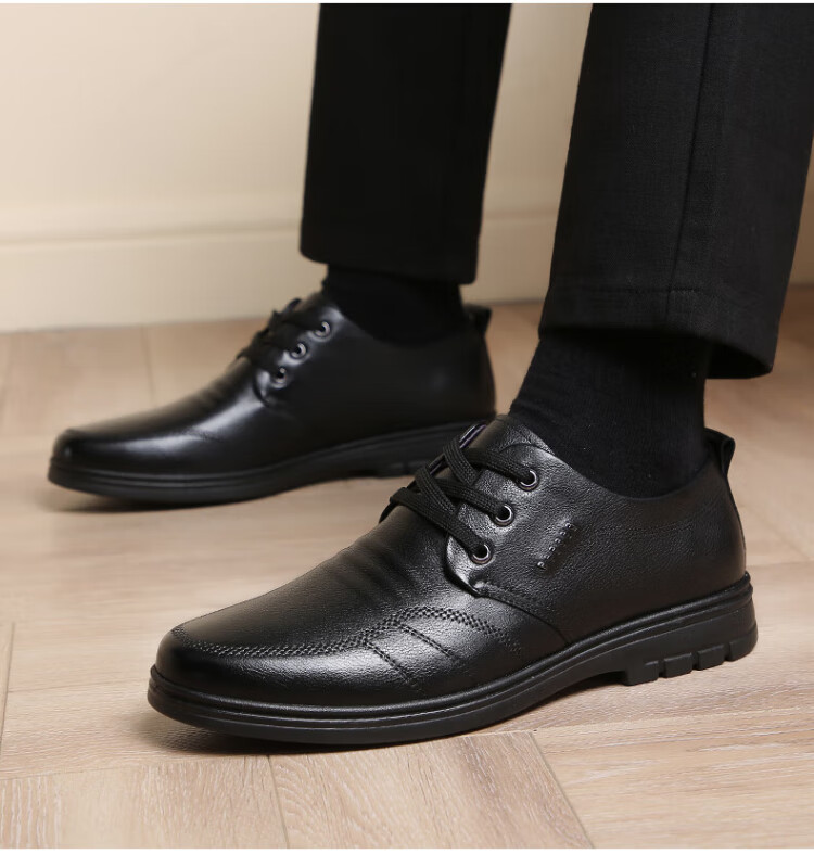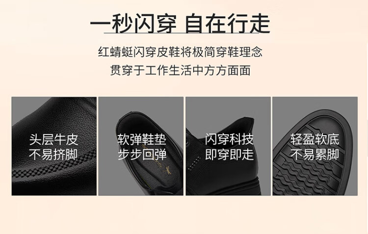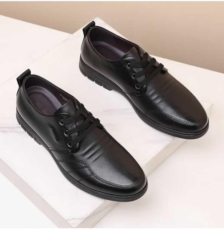 Red Dragonfly Men's Shoes Flat Autumn and Winter Cowhide Casual Shoes Men's Round Toe Business Formal Leather Shoes Men WTA306871 Black 41