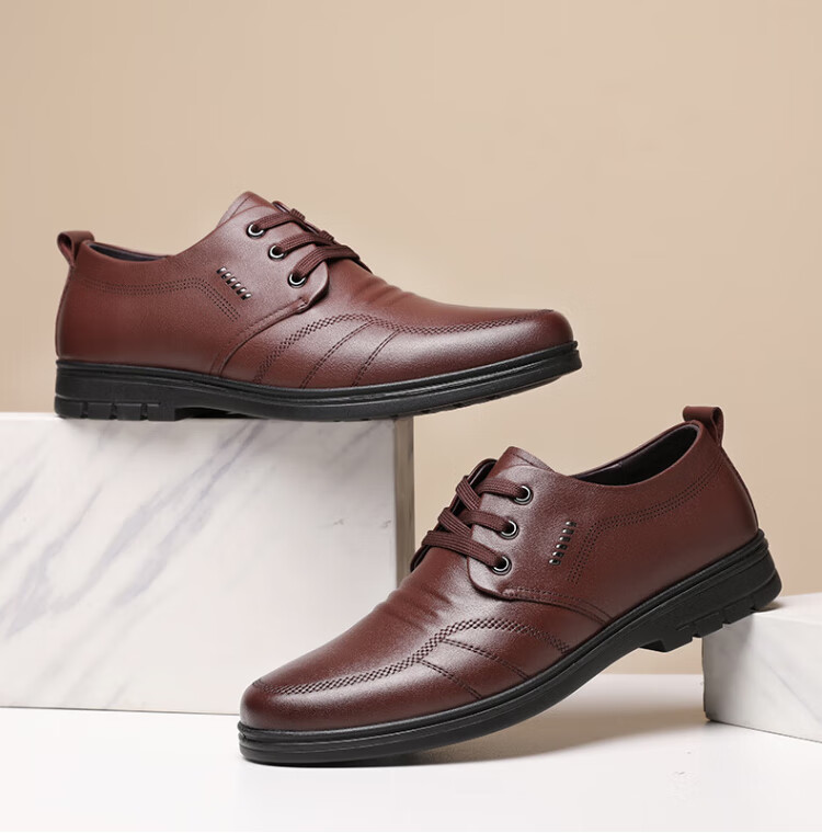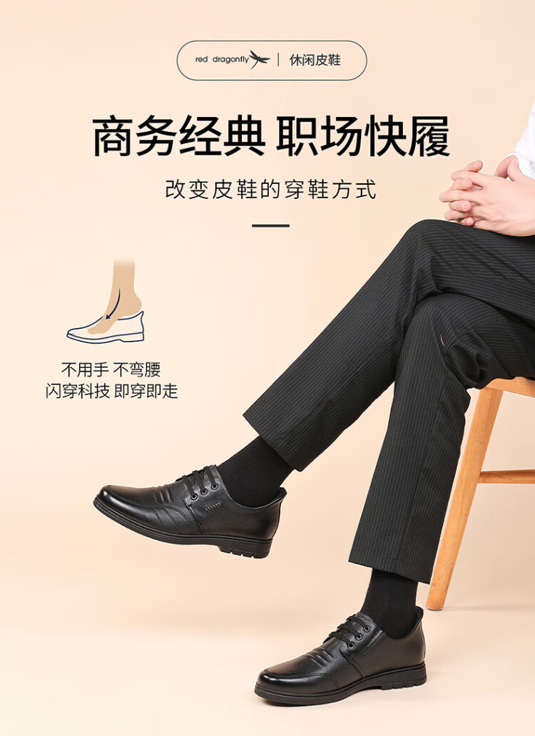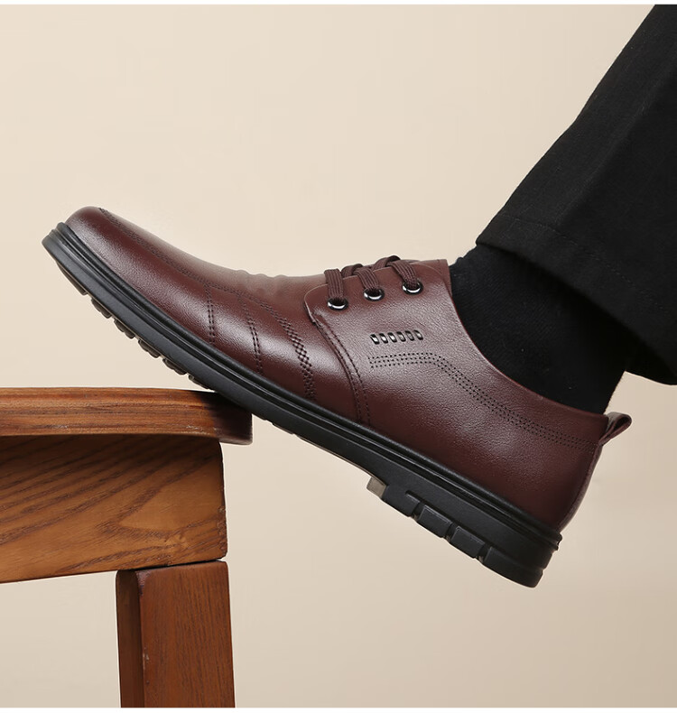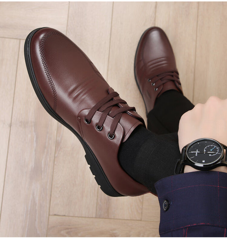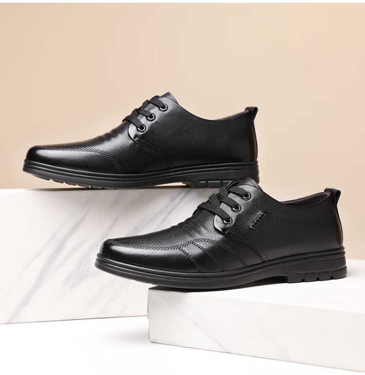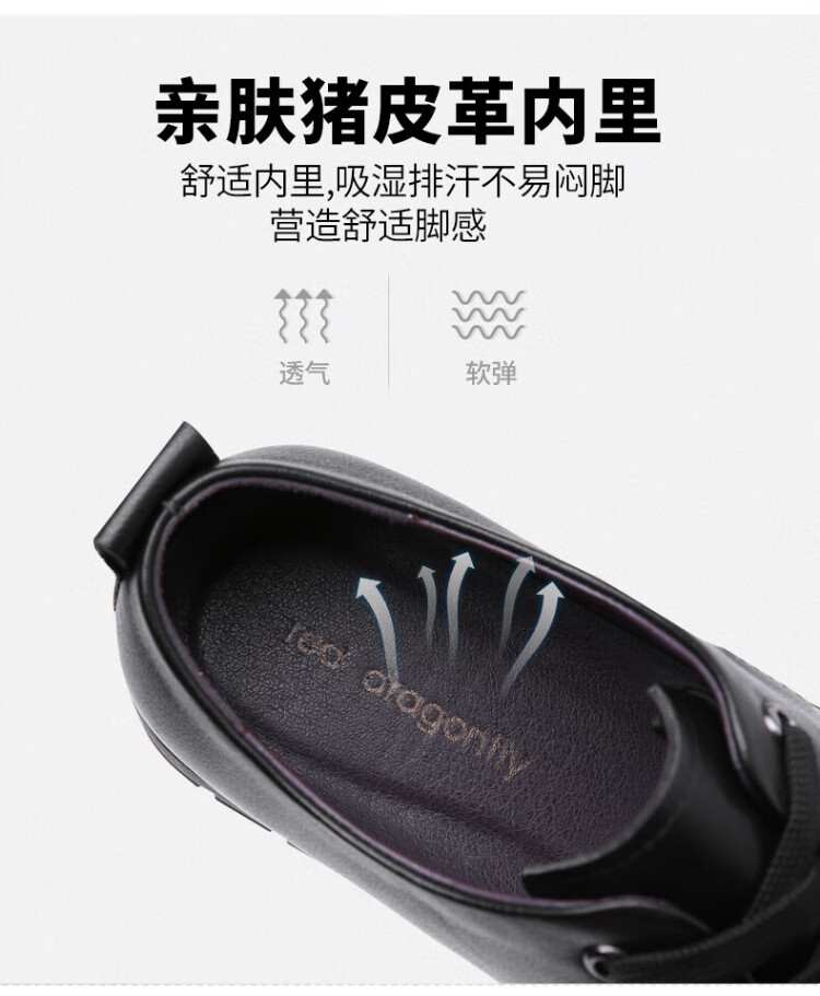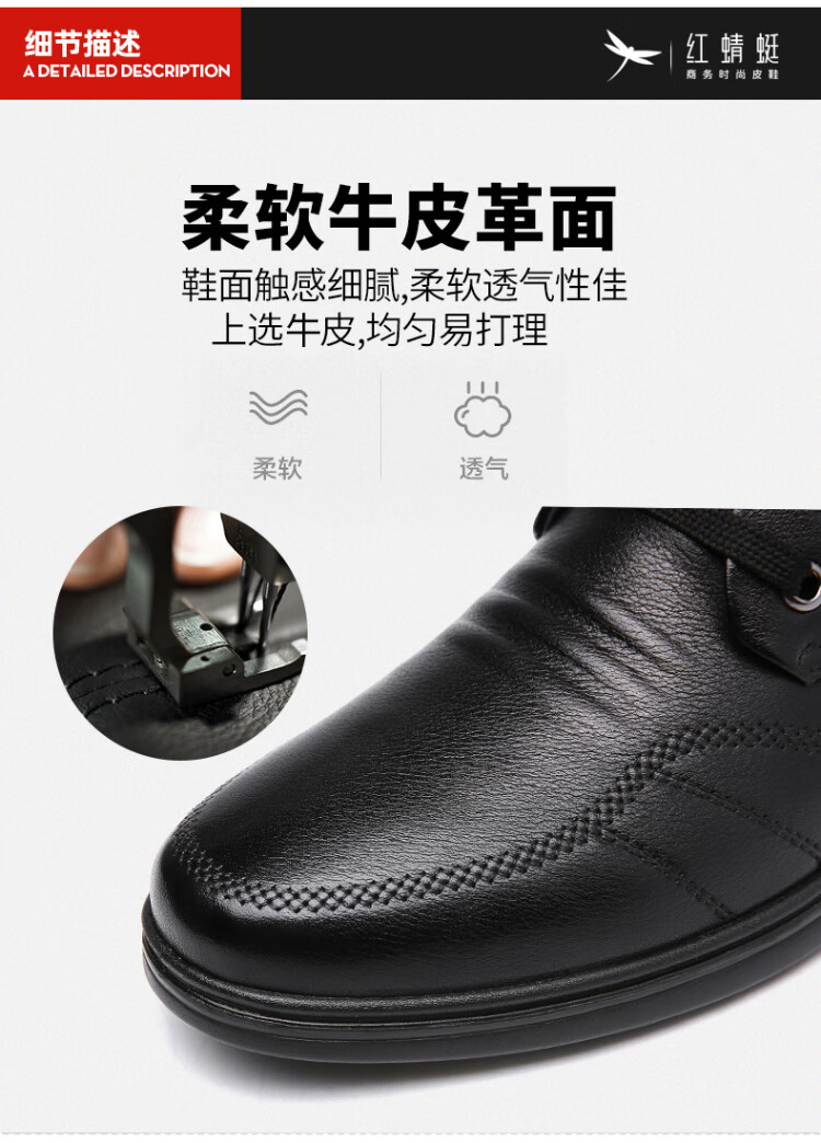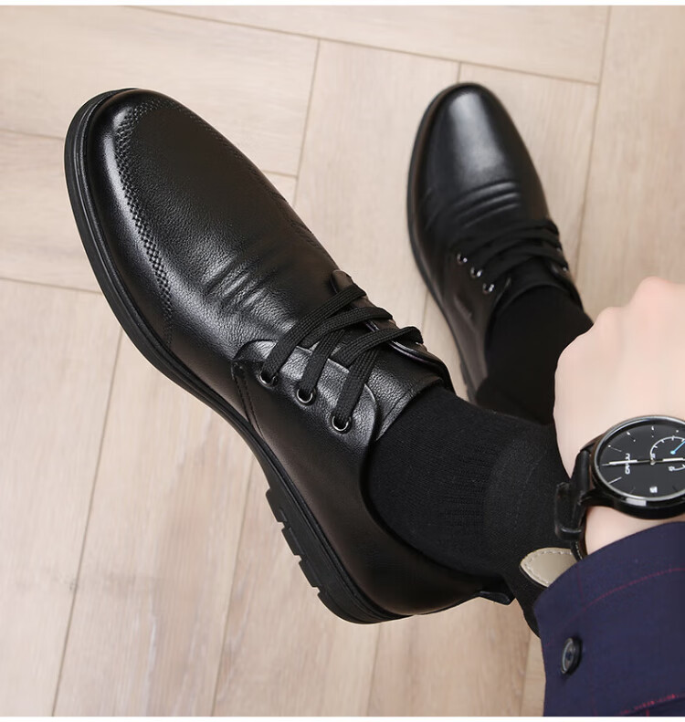 Red Dragonfly Men's Shoes Flat Autumn and Winter Cowhide Casual Shoes Men's Round Toe Business Formal Leather Shoes Men WTA306871 Black 41