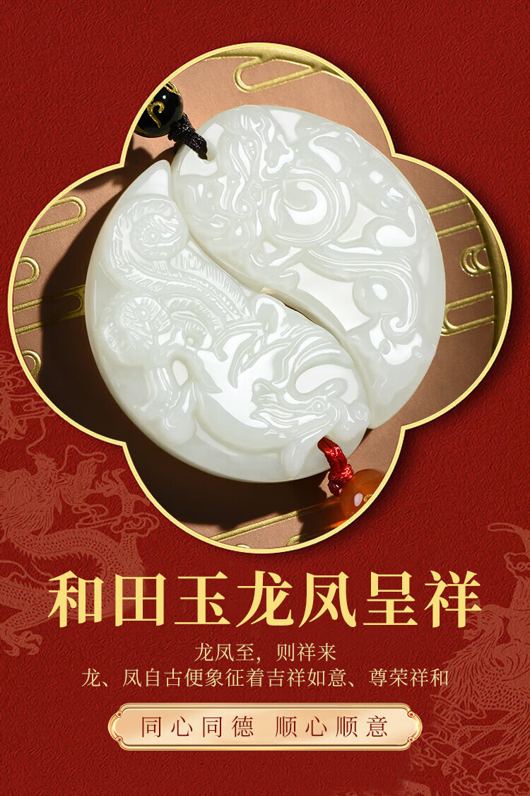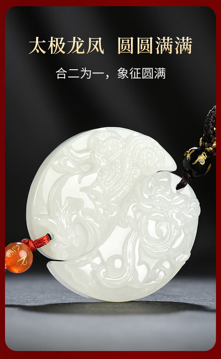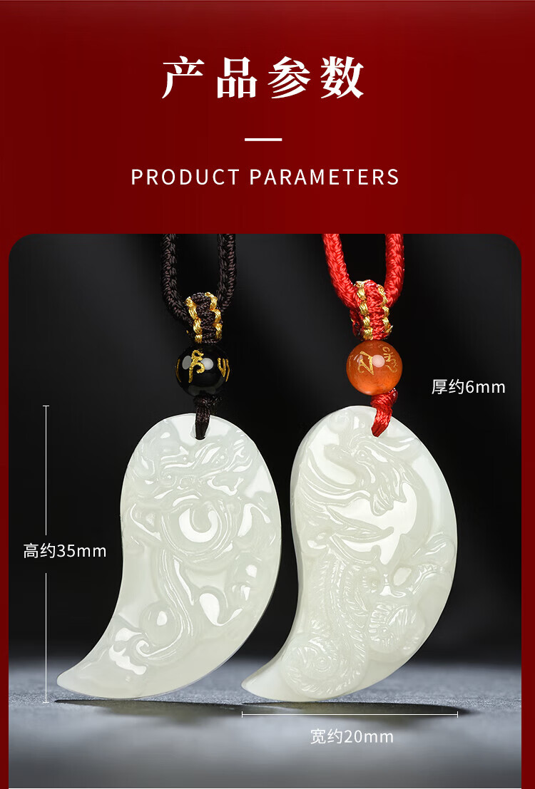 Phoenix Jewelry Hetian Jade Pendant Dragon and Phoenix Jade Pendant for Men and Women Couple Pair of Natural Jade Necklace Birthday Gift