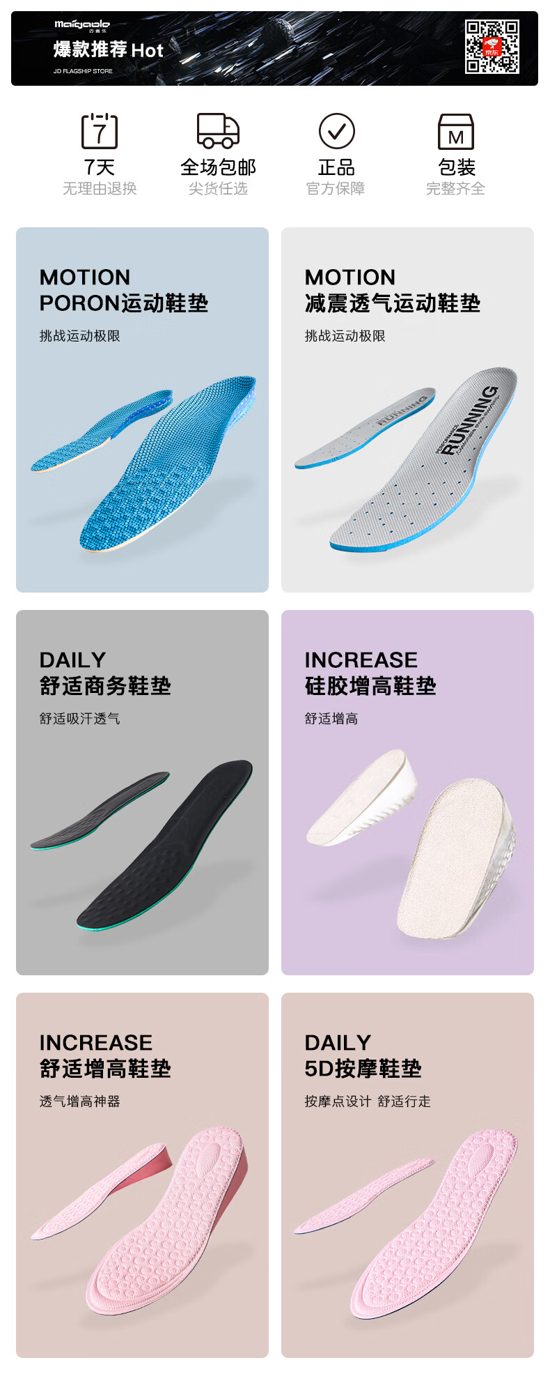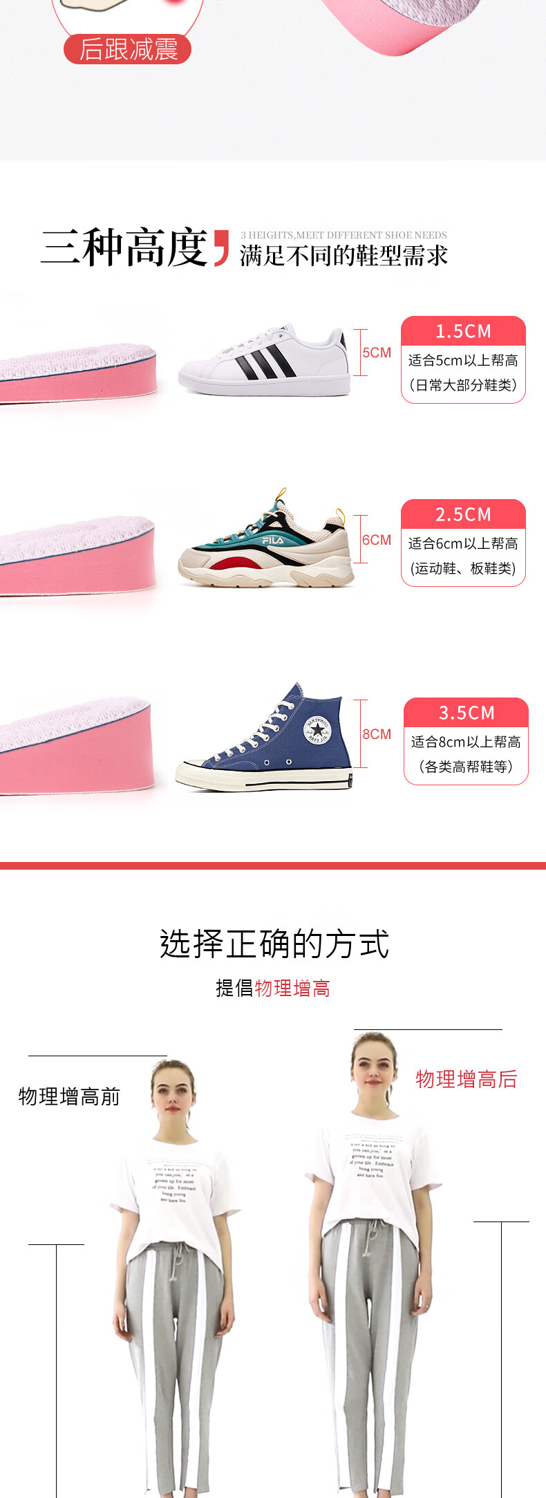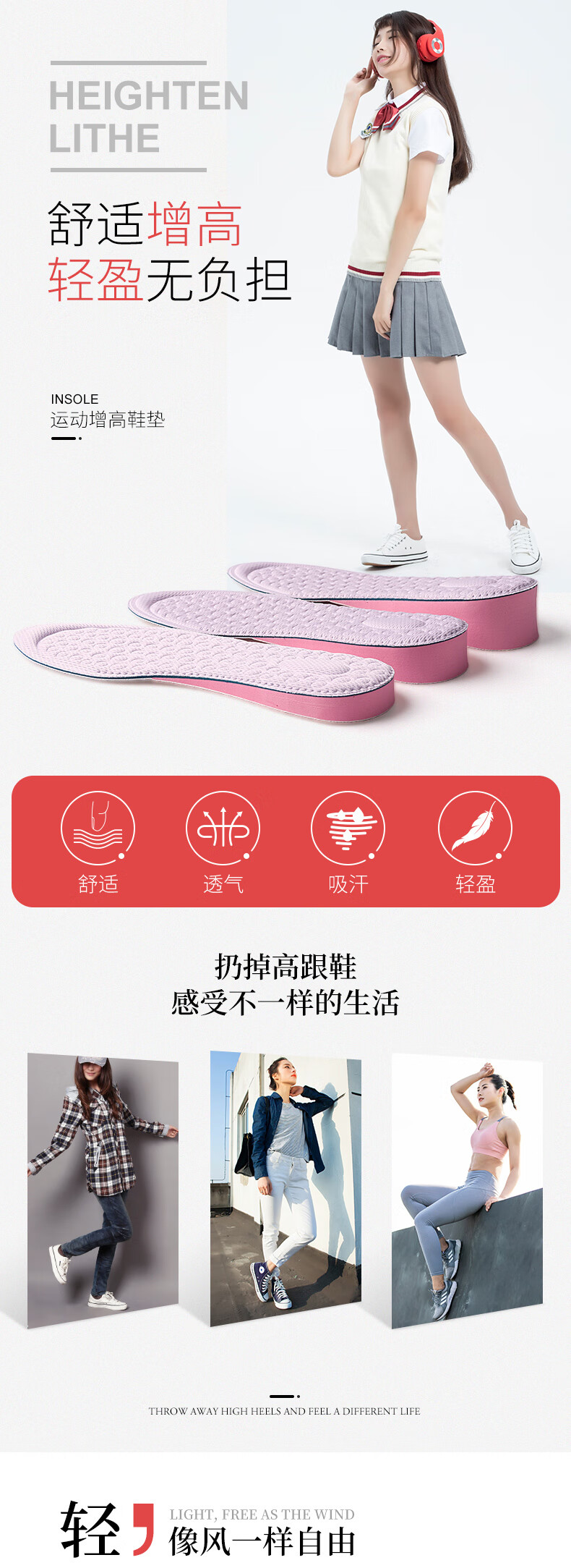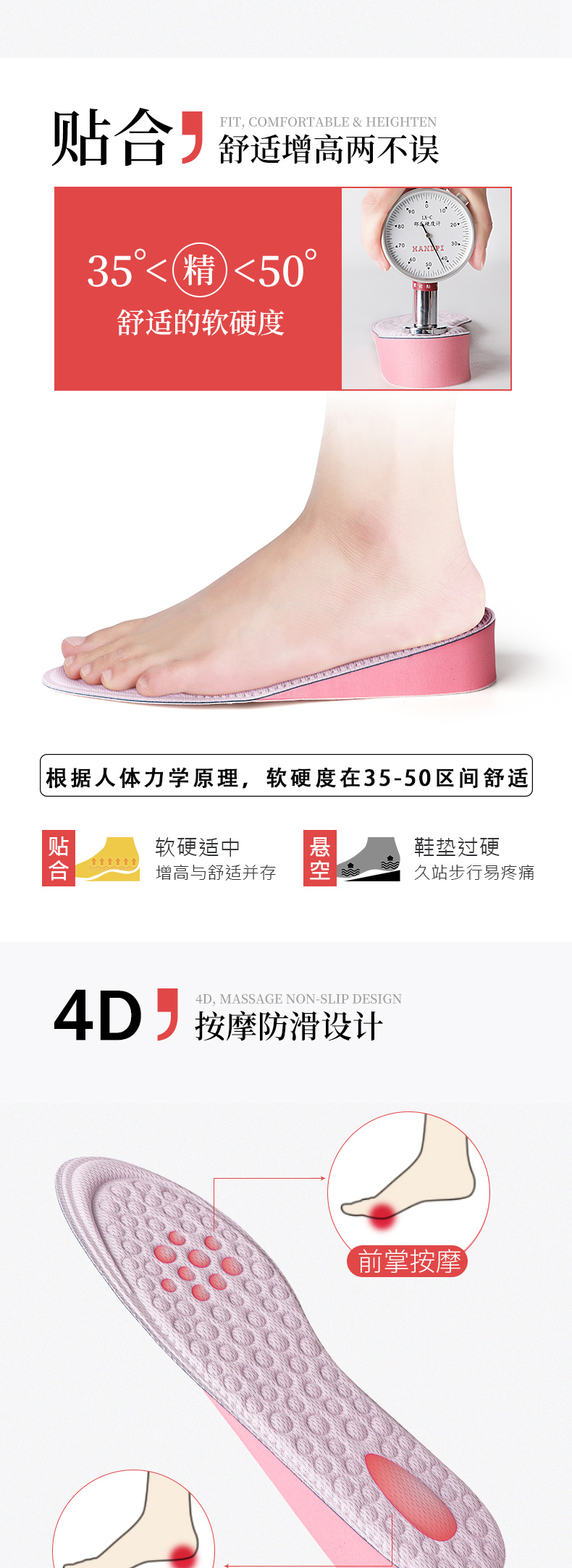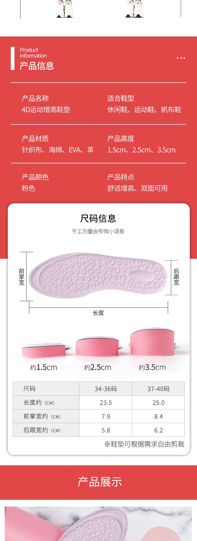 McGola women's inner heightening insole sweat-absorbent comfortable heightening pad white shoe cloth shoe insole 2.5CM37-40