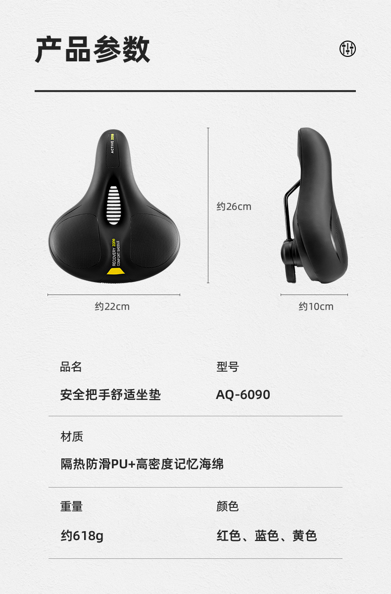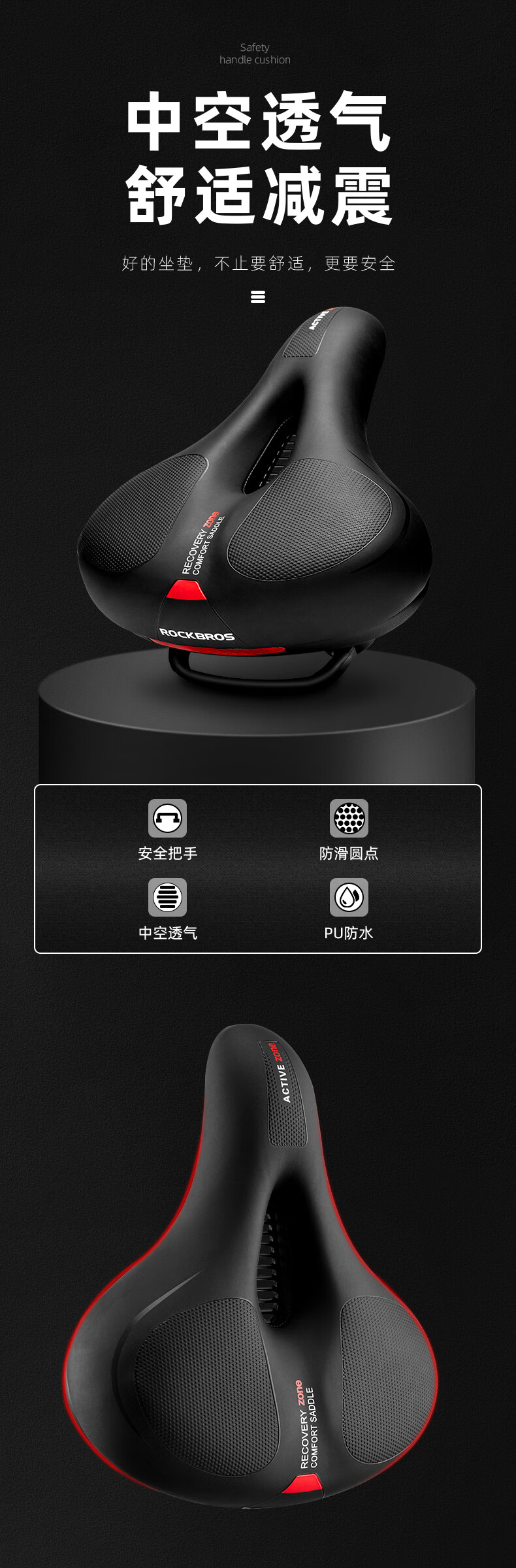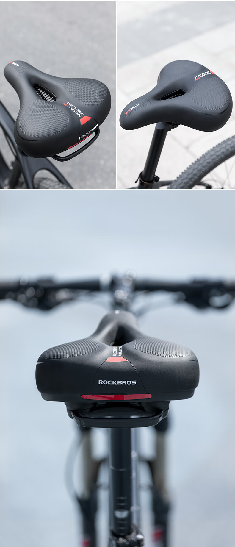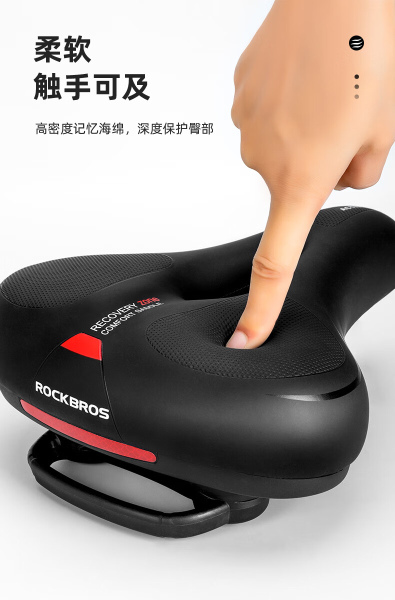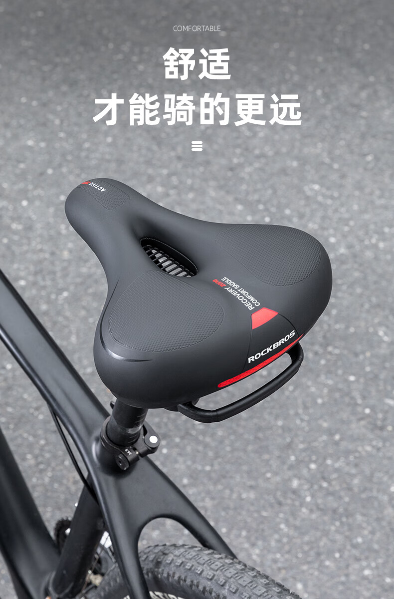 ROCKBROS Big Butt Bike Cushion Mountain Bike Seat Cushion Comfortable Thickened Sponge Seat Cushion Cycling Accessories Black and Red
