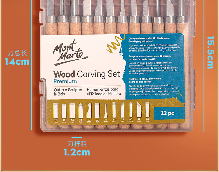 Low price on the whole network. 12 pieces of Mont Marte carving knives. Printing wood carving knife. Handmade wood engraving knife. Woodworking seal carving knife set. Alloy steel knife. Seal engraving tool. MMSP0023. Sketching. Mark pen painting.