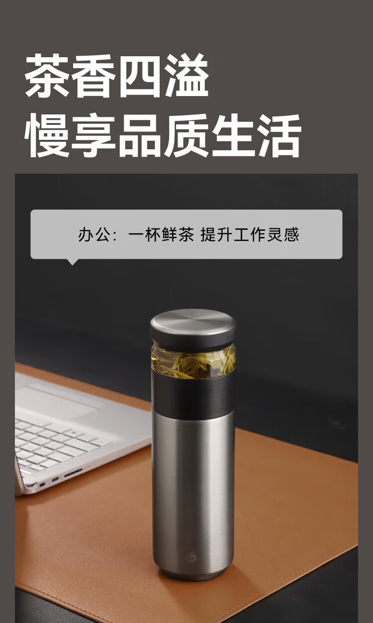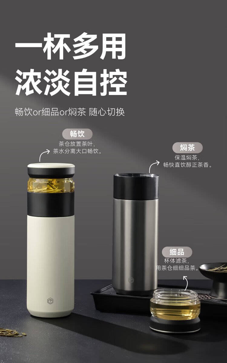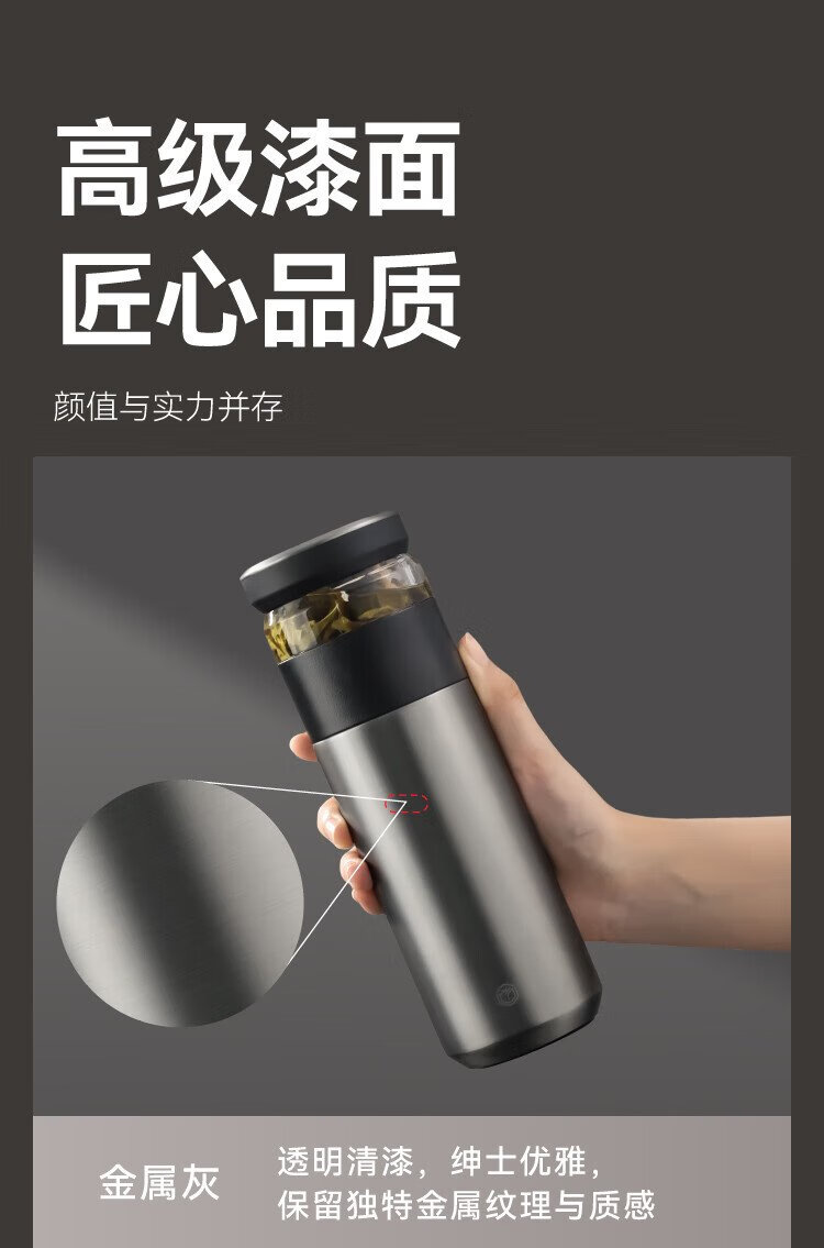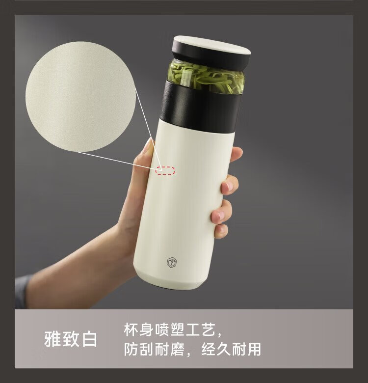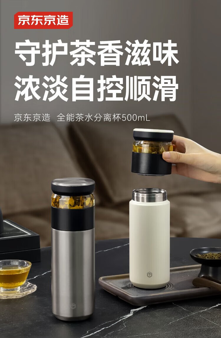 Jingdong Tokyo-made thermos cup, tea and water separation, high-end large capacity 316L stainless steel for men and women, elegant white 500ml