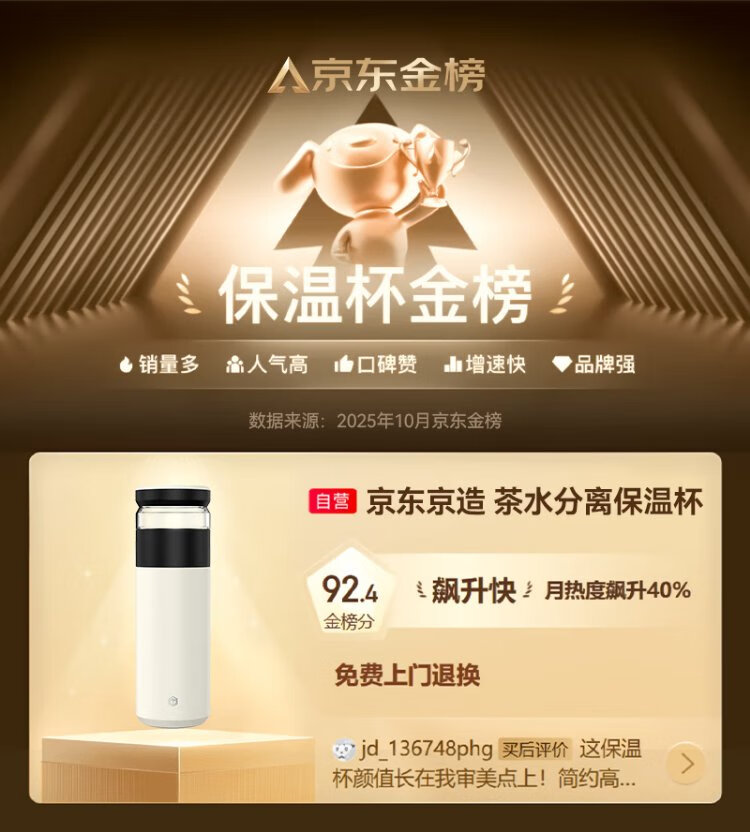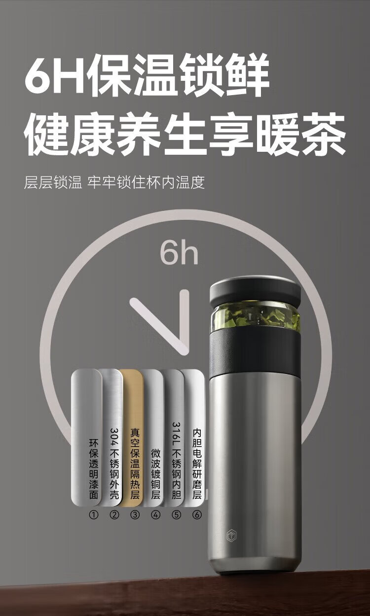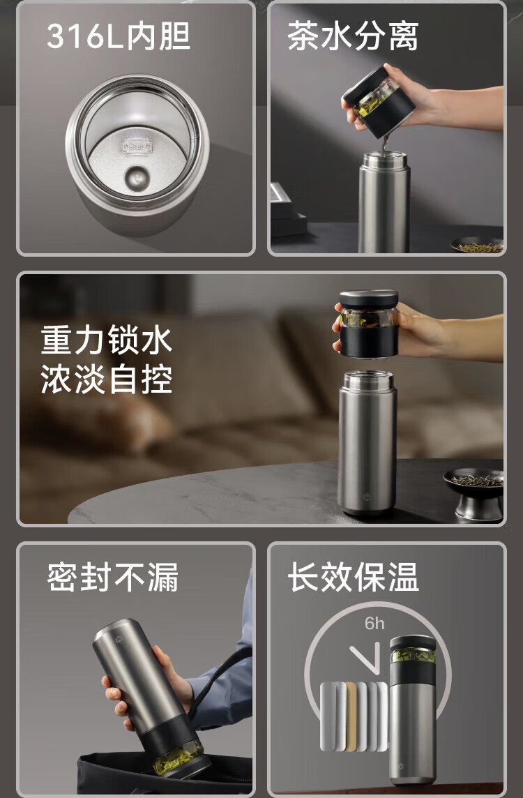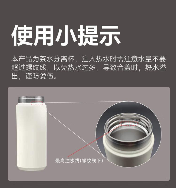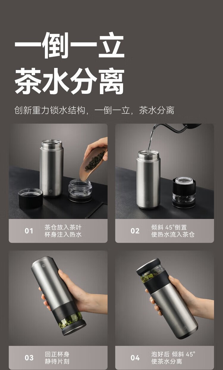 Jingdong Tokyo-made thermos cup, tea and water separation, high-end large capacity 316L stainless steel for men and women, elegant white 500ml