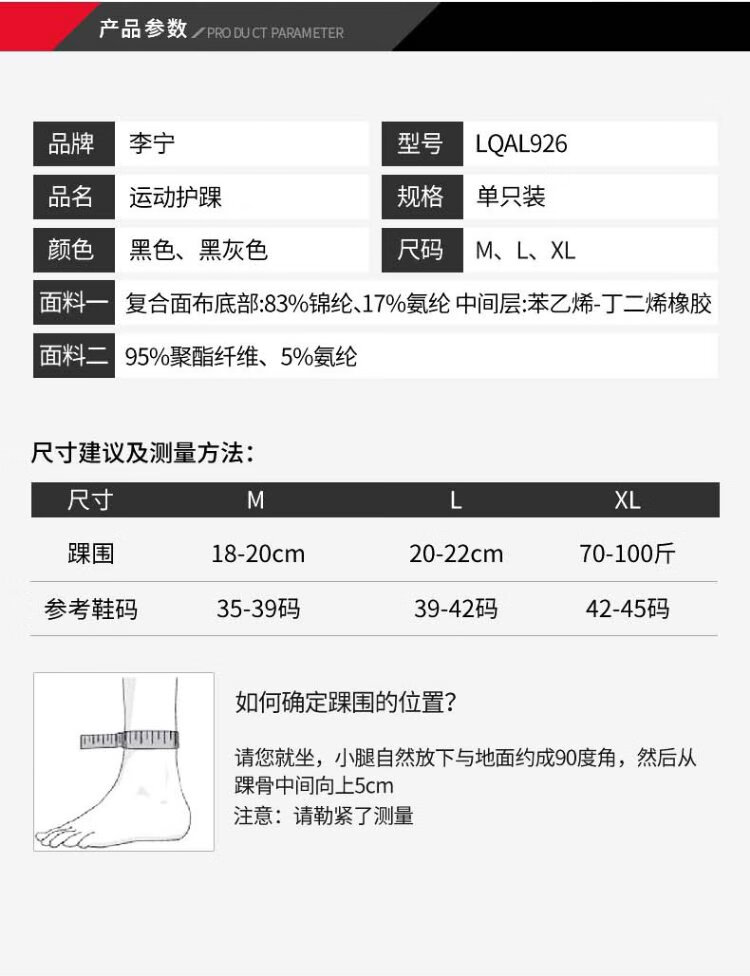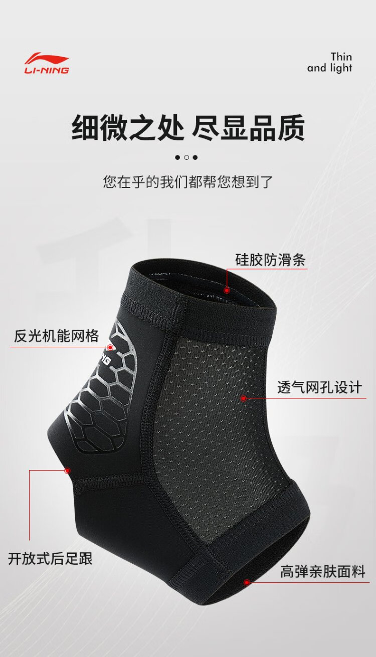 Li Ning (LI-NING) Ankle Protector and Ankle Protector, Fixed Wristband for Basketball Sports Bandage after Sprained Sprained Ankle Joint, Light and Thin