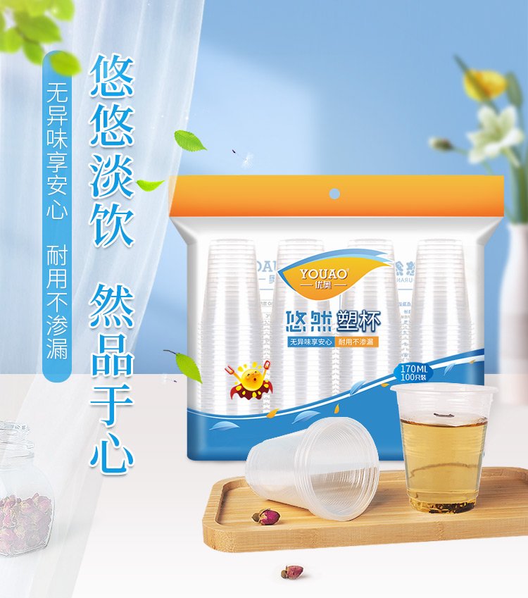 Youao disposable cups, plastic water cups, upgraded and thickened 170ml*100 aviation cups (non-paper cups)