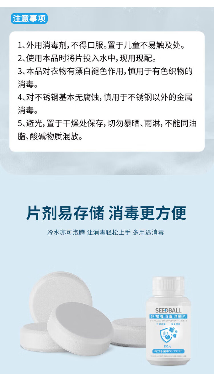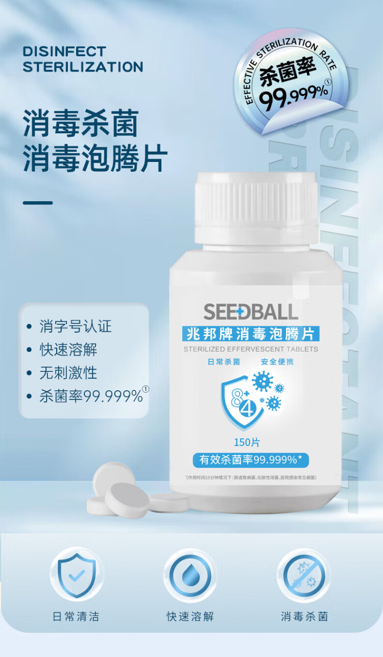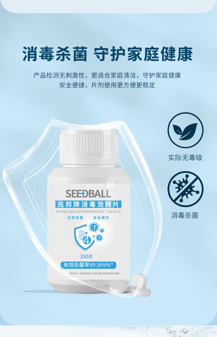 SEEDBALL chlorine-containing 84 disinfectant effervescent tablets 1g*150 tablets household fruit and vegetable sterilization washing machine bleach to remove tea stains and coffee stains